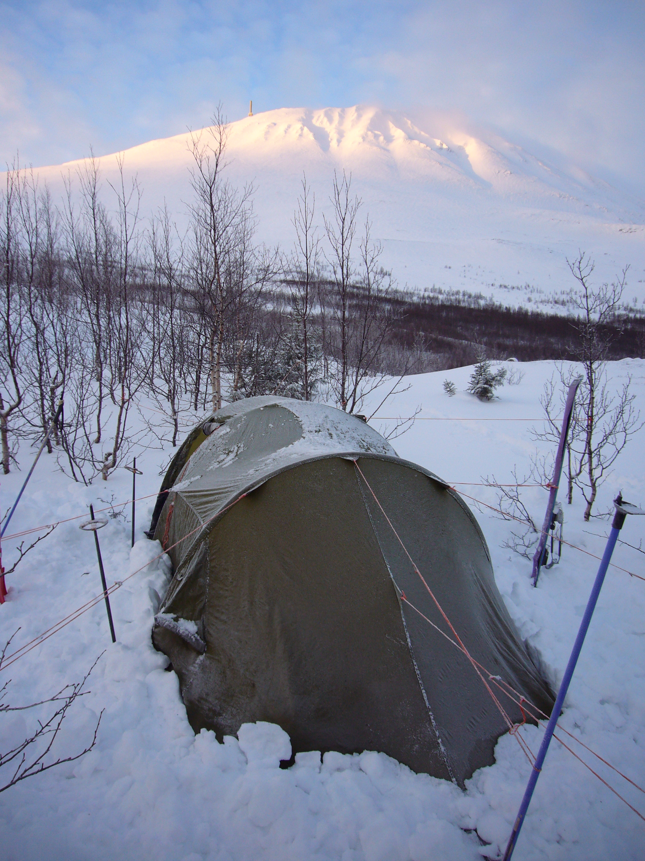 Vi kjørte fra Oslo og hentet Lars og Mette på toget i Kongsberg. Vi kjørte så langt vi kom oppover mot Gaustatoppen, på veien fra Rjukan over mot Tuddal. Vi parkerte rett ved den vinterstengte bommen og gikk på ski noen hundre meter opp i bakken og slo opp teltleir og laget bål om kvelden. Det var tett tåke, som letta utover kvelden.