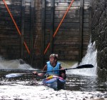 – Vrangfoss sluse – ikke så fin å stoppe verken før eller etter, men kanskje heller etter enn før, men vanskelig å få alle kajakkene opp.