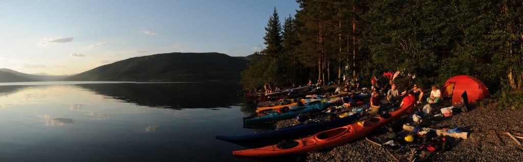 – Lindeviki (”Bandak”, 1513 I, 855 606)– etablert leirplass med toalett og flatt for telt og bålplass. Litt trangt å få opp alle kajakkene, men det gikk. Eneste sted å gå i land på nordsiden av Bandak fra Lårdal til Strauman