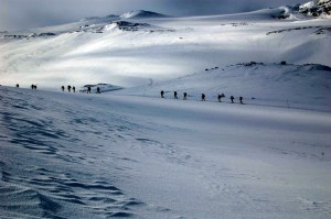 Vi hadde lite nedbør men mye vind på turen. Det var også ganske kaldt, vel nede i 15 minus på det kaldeste, noe som ble ekstra kaldt med endel vind. Likevel – stemningen god som alltid. Dagsetappene var på +/- 15 km, noe som var ganske passelig når det er tur med stor gruppe med ulik erfaring fra vinterfjellet og -telting fra før.