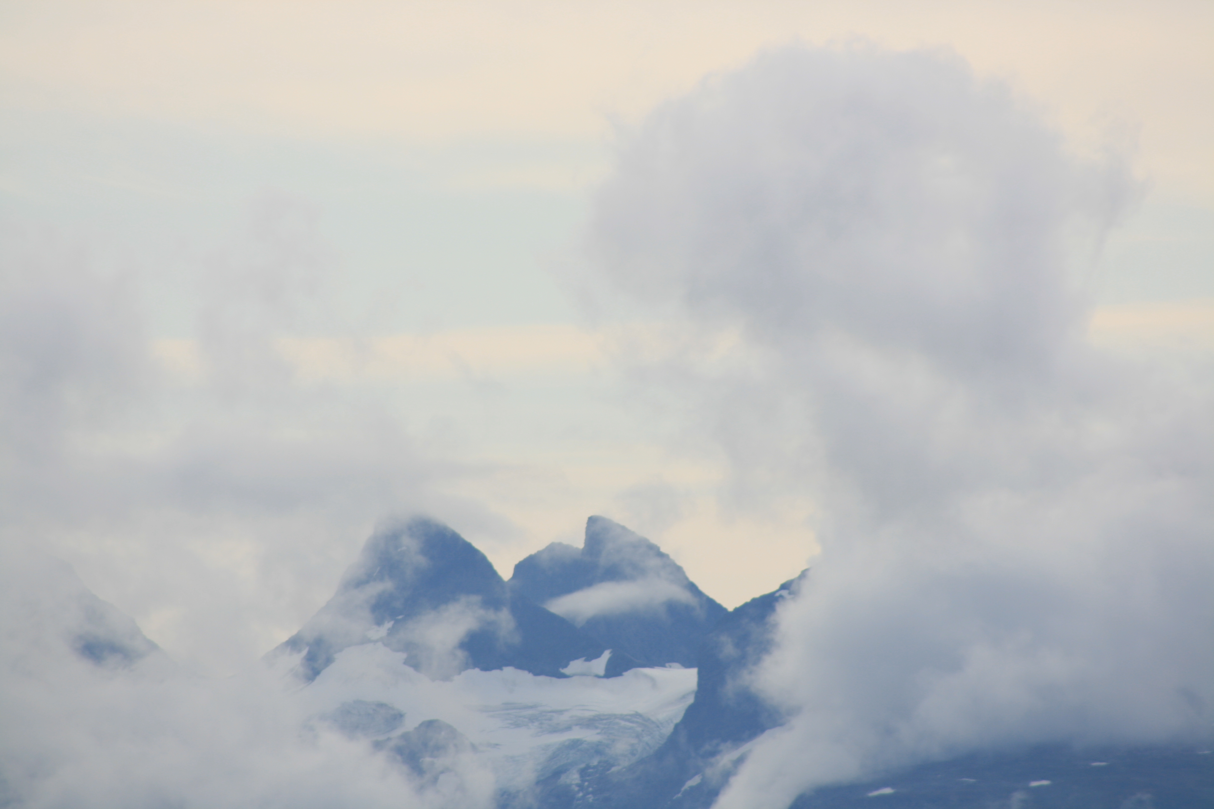 Dagen startet med lavt skydekke og småyr i lufta. Vi hadde blitt forespeilet at turen fra Nørdstedalseter til Sota Sæter var lang, drøy og kjedelig og gikk gjennom masse ur. Det var en grunn til at det store vannet vi skulle gå ca 6 km langs het Illvatnet! Så vi var beredt på at dette ble mer eller mindre en transportetappe. Halvor kjørte oss opp til dammen, så sparte vi en halvtime der, og den kjedeligste biten langs vei. Han var veldig omtenksom og ”passet på oss” og fortalte om veien, hvor vi kunne søke ly, og hvor det kunne være lurt å snu hvis vi skulle det, i tillegg til å be oss gi beskjed til Jorunn på Sota Sæter om å ringe han når vi var kommet frem. Det virket som de hadde mye kontakt mellom de to hyttene. Vi gikk oppover langs Fivlemyrane, og begynte oppstigningen mot Illvatnet. Stien delte seg slik at en kan velge mellom å gå til høyre (øst) forbi Illvatnet, eller å gå til venstre (vest) og over Fortundalsbreen, nedenfor Tverrådalskyrkja. Da kreves det imidlertid breutstyr og breerfaring, og i år var det visst en del sprekker på breen. Vi gikk østover, og kom opp til Illvatnet. Der hadde det kommet et lite lag med nysnø på toppene, og det var så nydelig! Skyene lå rett over toppene. Illvatnet var verken så langdrygt, kjedelig eller vanskelig som vi hadde blitt forespeilet, og det var faktisk en veldig fin tur. Turen gikk også rett vest for Tundrakyrkja, med Tundradalen østover, veldig flott utsikt. Så fortsatte turen også i ur ned til Sotaskarvet. På slutten merket vi at vi hadde gått store deler av dagen i ur (ca 12-13 km), men da var det flott å se nedover mot Sota Sæter i bunnen av dalen. Fin sti nedover, men mange høydemeter nedstigning (800 meter), siste ned gjennom skogen. Da var det ekstra godt å komme frem til Sota Sæter igjen der vi var ventet og ønsket velkommen. Det ble satt frem mat til oss etter vi hadde hatt en herlig dusj, og vi hadde en herlig kveld men sluknet relativt tidlig. Turen tar 8 timer på kartet, vi brukte ca 8,5 – 9 timer (vi sparte også en halvtime på å bli kjørt opp til dammen). Det var litt regn denne dagen, og det var noen steder litt glatt i ura. Denne turen MÅ justeres opp til 9 timer. Den er såpass krevende at en kan ikke bli lurt med at den tar ”kun” 8 timer.