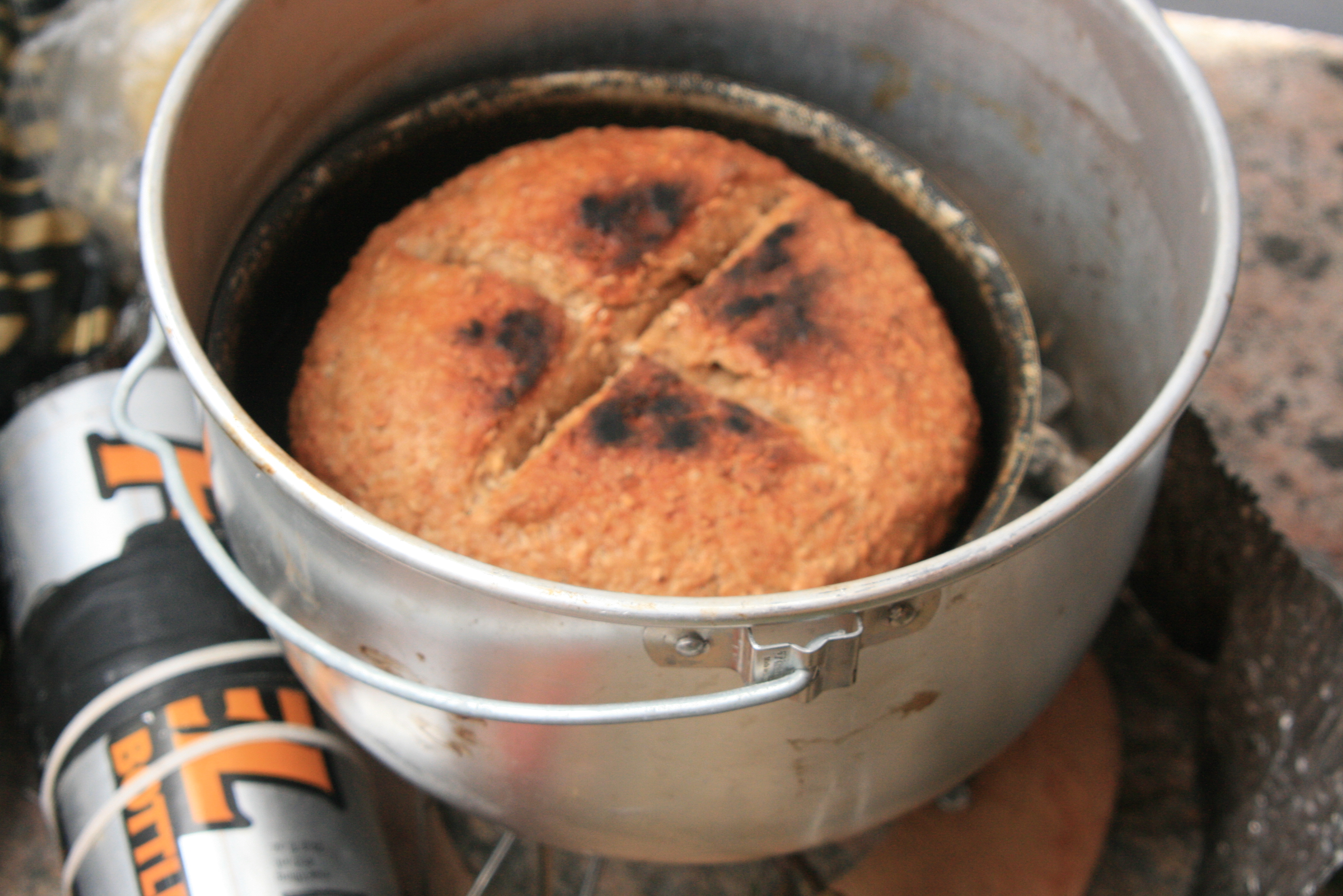 Kna deigen godt, og la stå til heving over natta. Ha sand i bunnen av en stor gryte (nb: ikke teflonbelegg). Klapp deigen til en flat, rund pannekake og legg denne i ei panne/gryte. Lag et stort kryss i toppen (for heving). Sett panna/gryta med deigen i den større gryta med sand i bunnen. Legg på lokk på den store gryta under steking, så ovneffekten kommer på.