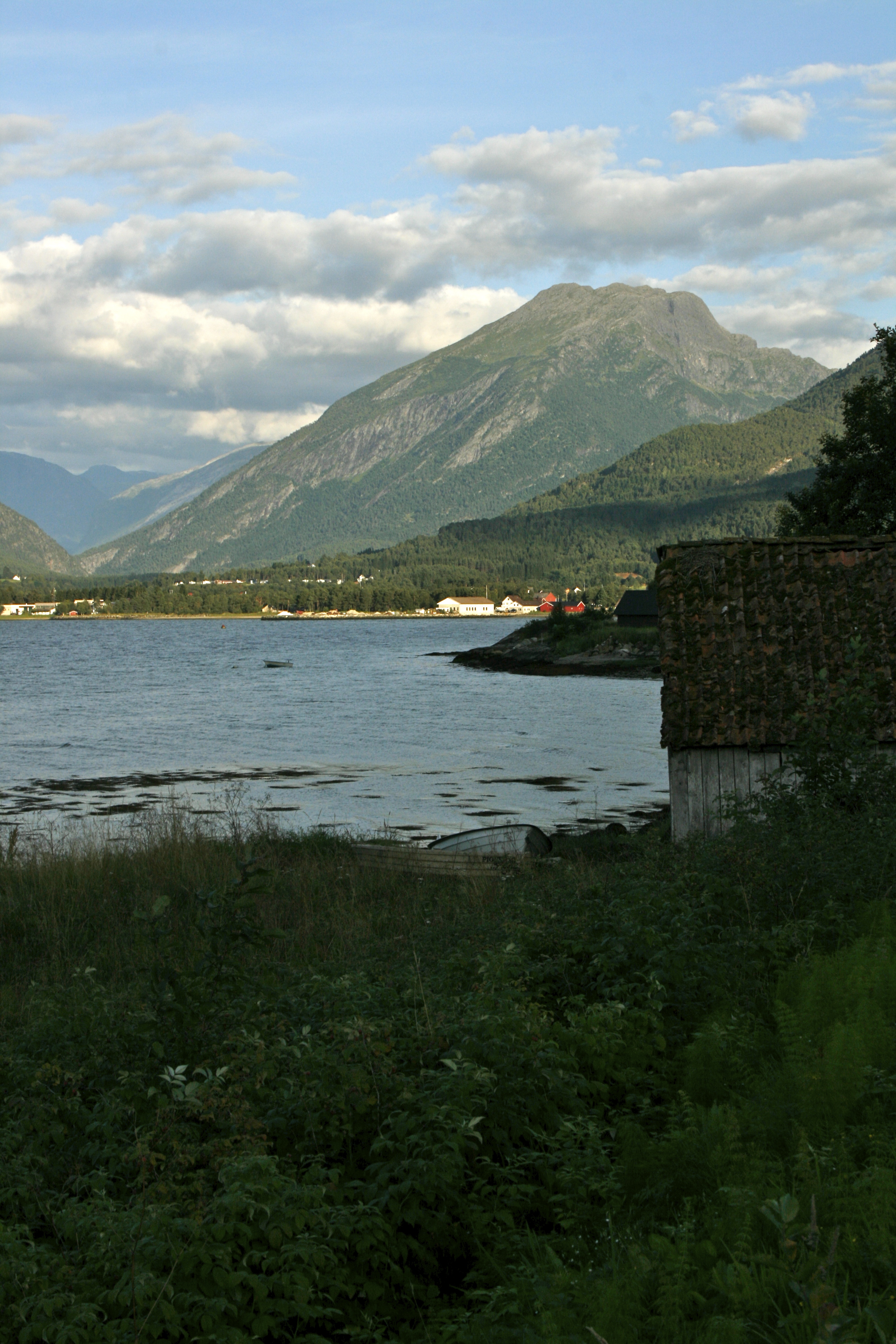andre steder nedover veien, for nå var det veldig lett å finne riktig vei opp fra broa der vi hadde parkert bilen. Man kan kjøre opp til parkeringsplassen på ca 150 moh. Veien ned til bilen var bratt, men med deilige bringebær ved siden av veien. Vi dro ned til Hyen sentrum, tok et herlig bad i fjorden på ”Columbusplassen” – en veldig fin park ved utløpet av elva til fjorden i Hyen, og handla inn mat til de neste dagene i Jokeren i Hyen (åpen til kl. 1700 mandag-onsdag, til kl. 1800 torsdag og fredag, og til ? lørdag). Ca 3,5 timer inkl lunsj og pauser.