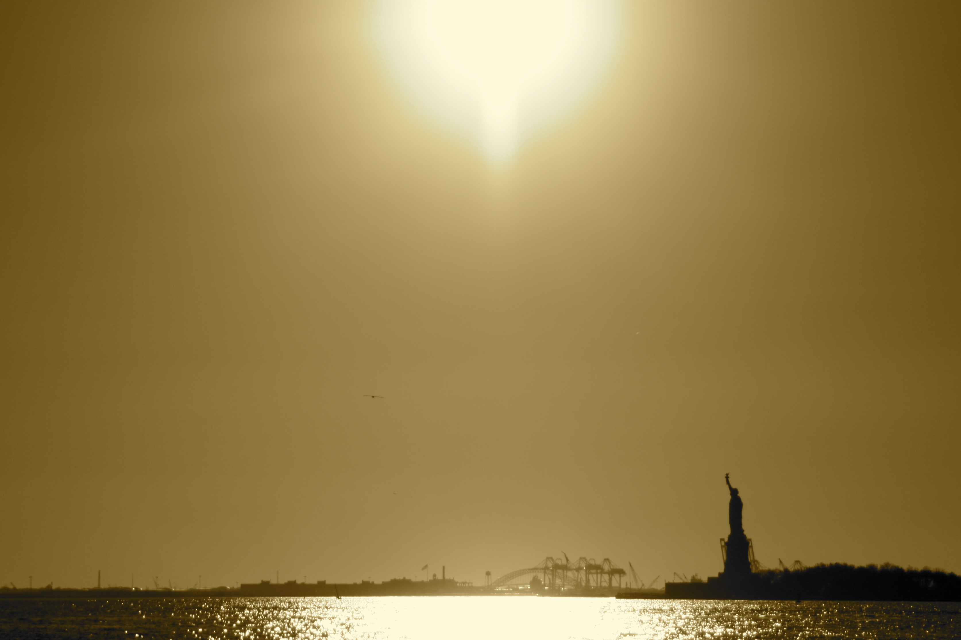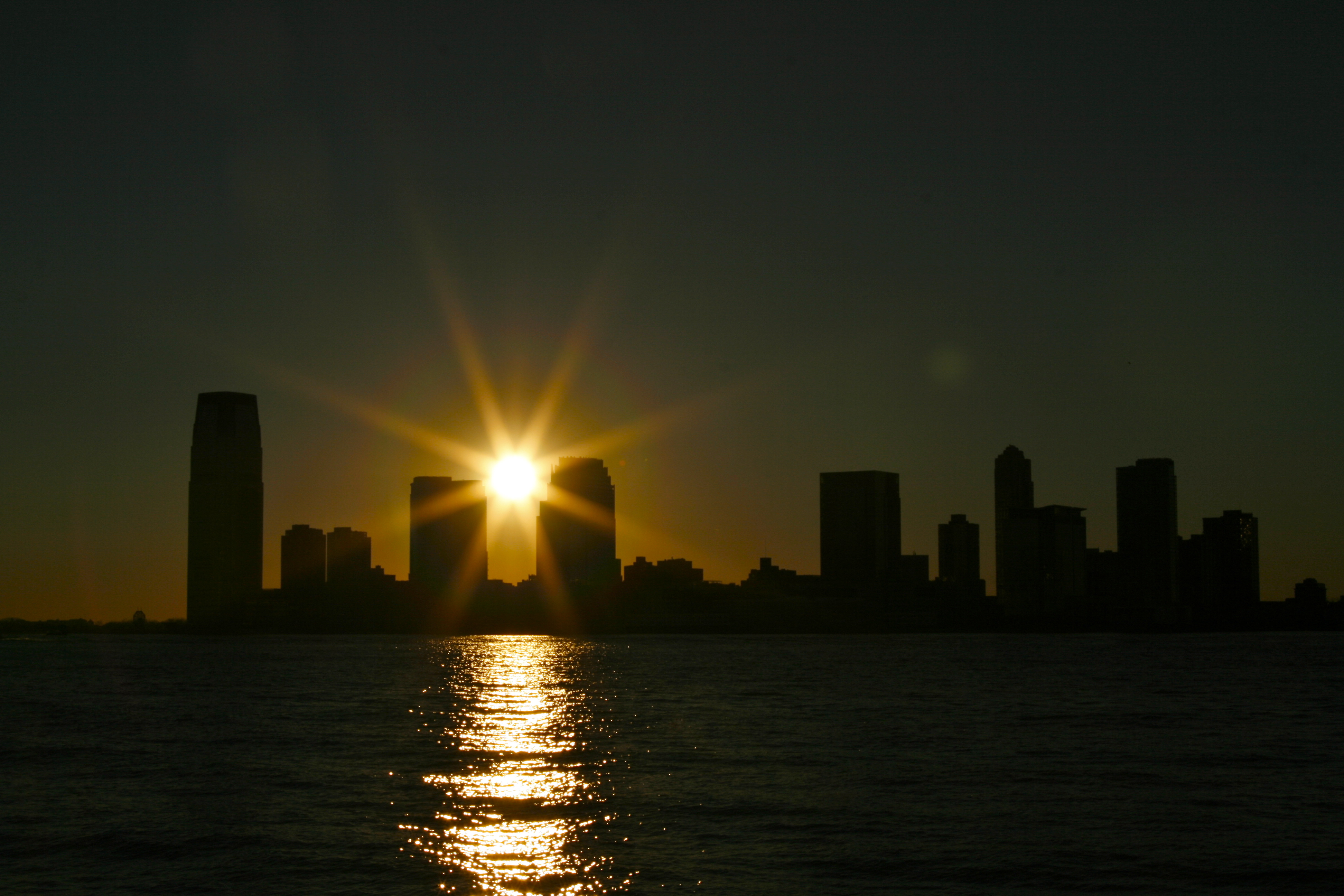 ble mørkt. Uansett hadde vi en fantastisk sykkeltur nedom Battery Park helt på sørspissen, og så Frihetsgudinnen rett før sola gikk ned, og videre oppover langs Hudson River i det vi så solnedgangen over skyskraperne på New Jersey! Helt magisk! Da vi var på Battery Park tenkte vi at vi kunne kjøpe billetter til Ellis Island dagen etter (12 $ pr pers, 20 $ inkl. omvisning/audio). Her også var det samme at man kunne kjøpe billetter på nettet, men måtte da skrive ut billettene. Vi kom dit ti over halv fire, og de stengte kl tre… Vi leverte tilbake syklene i sekstida, etter å ha sykla til sammen ca 2 mil, og dro direkte til en Thailandsk restaurant, Thai Market, ikke langt fra Ragnhild (ligger mellom 107th og 108th str i Amsterdam Av.)
