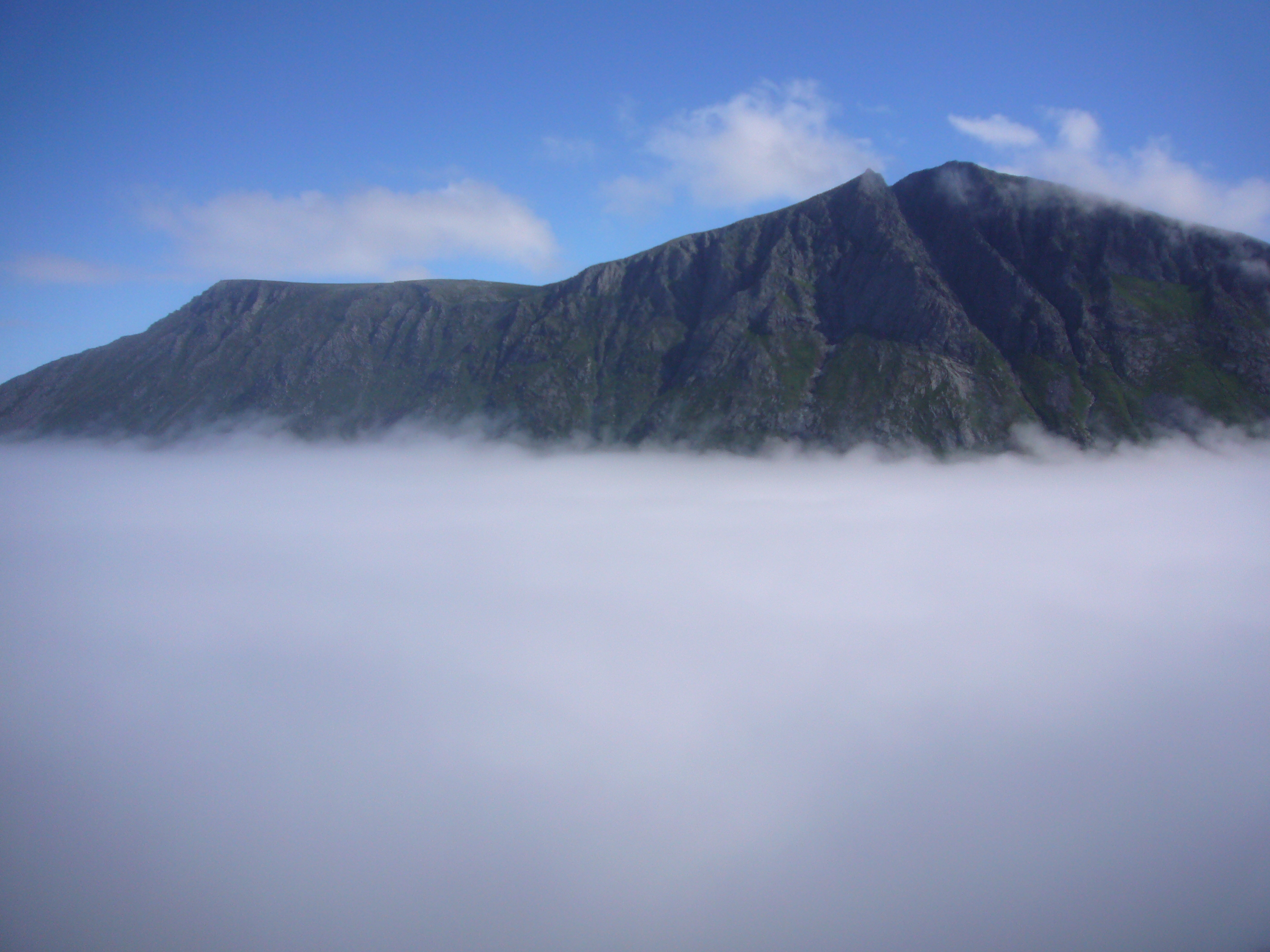 Vi kjørte til Hundeid, i Hundeidvika lengst nord-øst i Hjørundfjorden. Vi gikk opp Megardsdalen. Litt før Megardsstølen tok vi av stien og gikk rett vestover mot Keipen. Det var tåke helt til vi var oppe på ca 6-700 moh, da «gikk vi gjennom» tåka og kom over den og fikk et fantastisk skue utover et tåkelandskap under oss og topper og blå himmel over oss. Vi hadde lunsjen på platået øst for Keipen, og gikk deretter opp til Hundatinden. Tåka var kommet tilbake, men sola trengte gjennom med varmen. Vi gikk ned samme vei til platået, men gikk noen hundre meter lengre nord da vi skulle ned fra Keipen. Vi gikk nedover i en bregneskog og tåkeland, men tåka letta da vi var nesten nede ved bilene igjen.