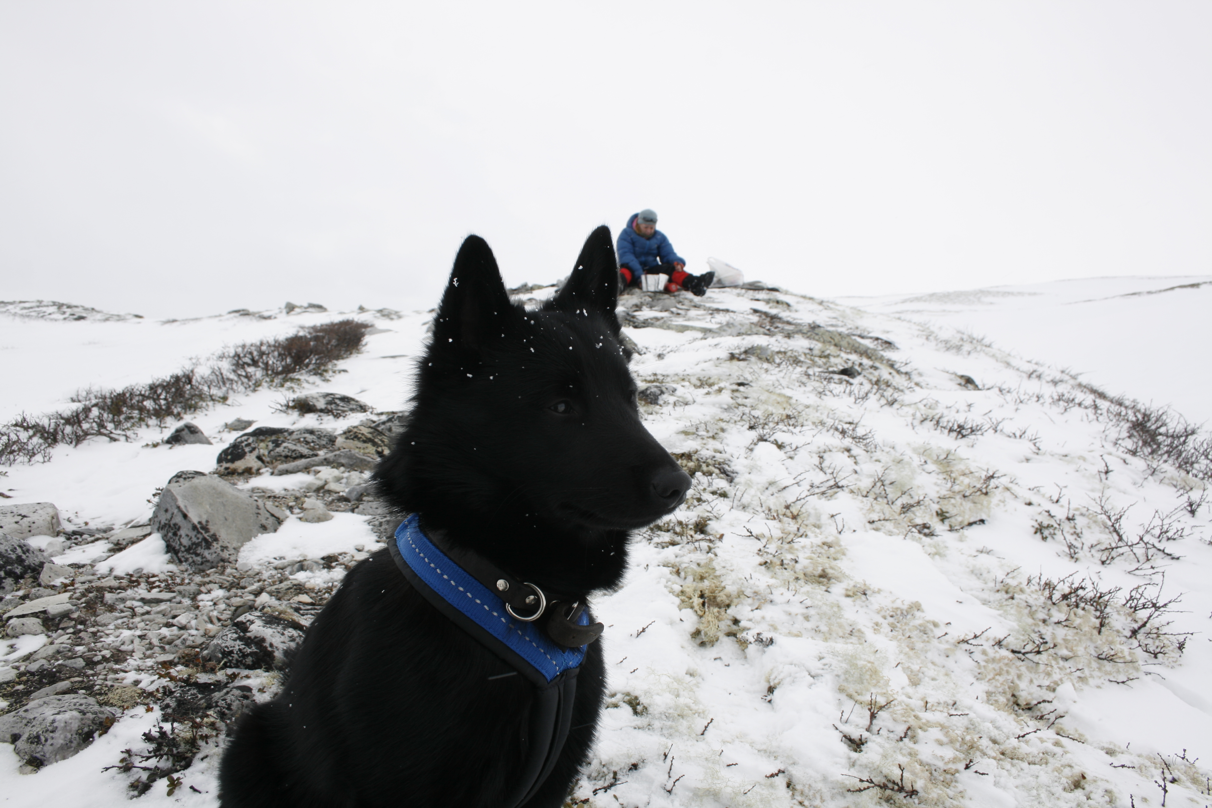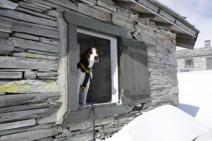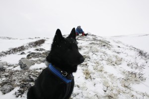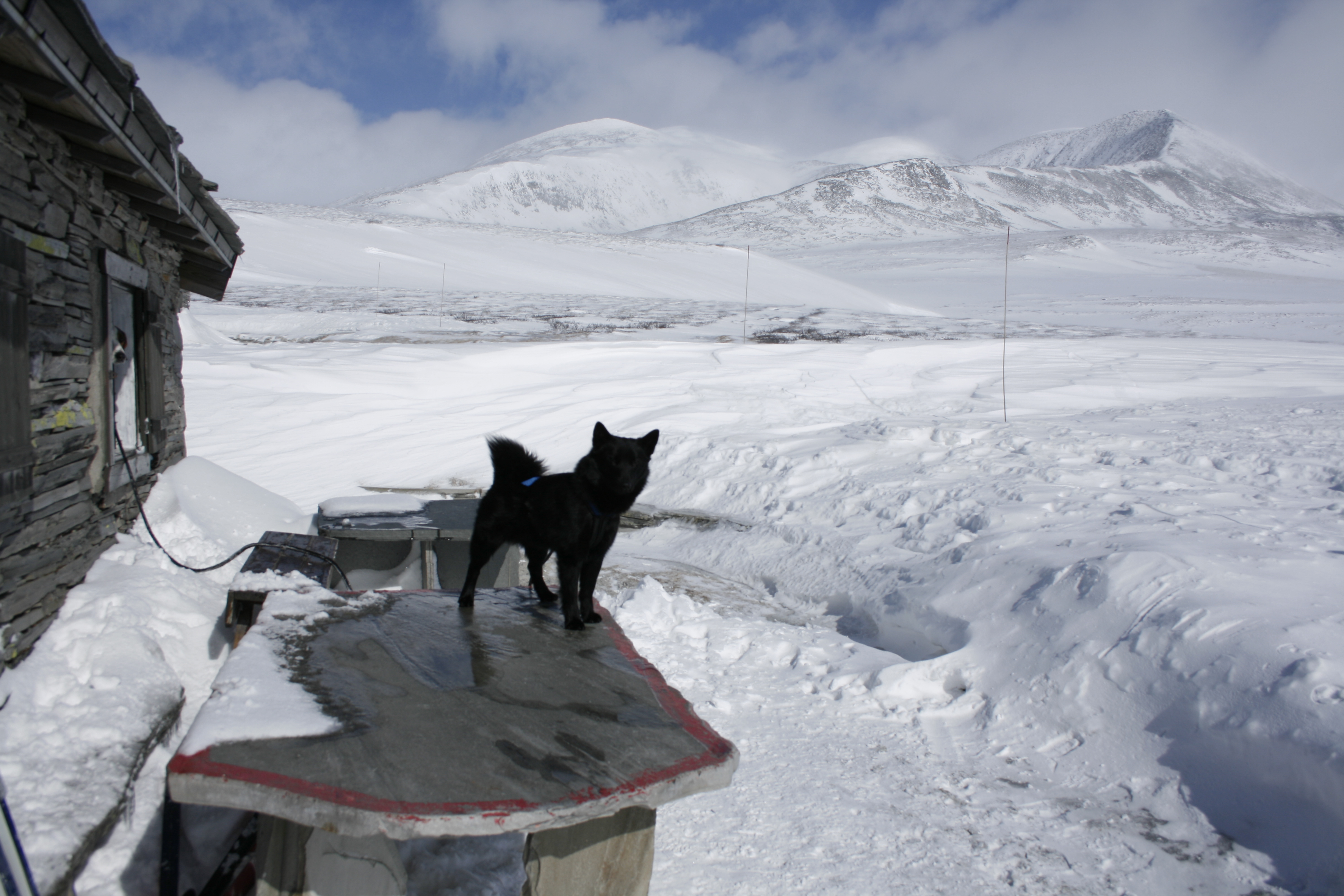 Vi våknet opp til lavt skydekke og veldig mye vind. Toppturplanen ble skrinlagt ganske raskt, men vi bestemte oss for å ta turen vestover mot Peer Gynthytta. Hvis det klarnet/stilnet underveis var det mulig å gjøre om på planene og ta turen opp til Ljosåbelgen (1948 moh). Vi hadde vinden imot oss (liten kuling?) de ti km inn mot Peer Gynt hytta. Kvista løypa gikk sør for Randen (1388 moh), en løype som ikke vistes på kartet. Vi gikk i en sørhelling hele tiden, og på skareføre ble det ganske slitsomt for anklene. Men med hundene foran hjalp det på. Vi kom til koselige Peer Gynt hytta og på grunn av vinden valgte vi å ta lunsjen innendørs. Hundene derimot ble igjen ute og det tok ikke lange tida før Karo fant le i en vinduskarm, mens Varg hoppet glad og fornøyd og tok imot alle som ville bli tatt imot med stor iver. Peer Gynt hytta er privat drevet og hadde oppe fra palmelørdag og ut påsken. En utrolig koselig hytte med mye historie både i og på veggene. Vi bestilte kakao og vafler men glemte ut at det krevdes kontanter og at kortet ikke gjelder over alt i fjellheimen… Men det ble kjapt fikset med at vi fikk med oss en giro. Mange folk kom og gikk under pausen vår, hovedsakelig fra Høvringen og hovedsakelig dansker på løypeski uten stålkanter. Vi var uten tvil glad for at våre ski hadde stålkanter!