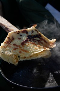 For en morgen å våkne opp til! Sola skinte fra vindstille, knallblå himmel. Det var ikke annet å gjøre enn å ta soveposene , liggeunderlagene og primusen ut og opp på knausen med den gode utsikten like ved. Der ble det stekt pannekaker og kaffe og virkelig nytt været, påsken og livet!