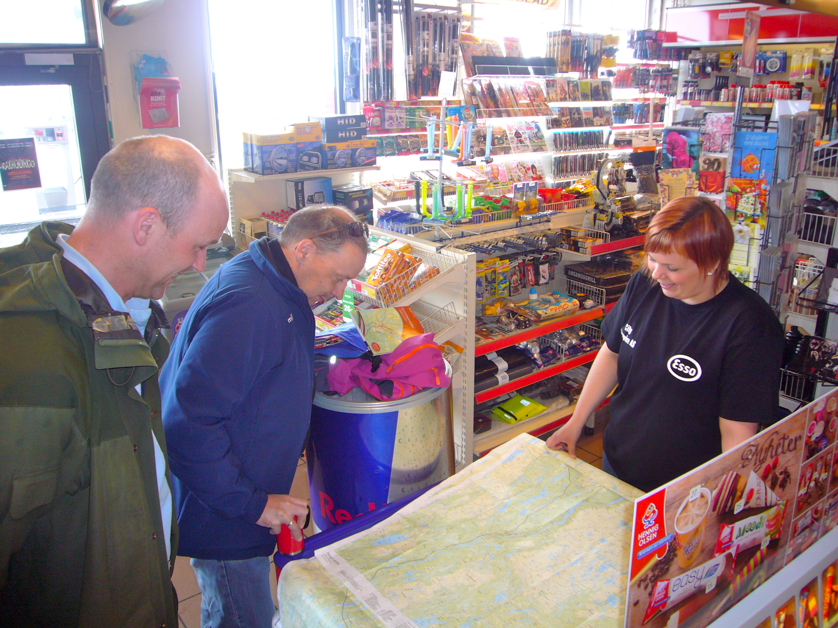 Når vi først var i Kautokeino brukte vi formiddagen på å se litt av plassen. Men også det råtne føret gjorde at vi ville forhøre oss litt mer om forholdene på vidda. Vi gikk nedom den lokale Essostasjonen og fikk god hjelp av ekspeditrisa samt flere lokale mannfolk med gode tips og ferske scootererfaringer. På bakgrunn av dette og snøforholdene bestemte vi oss for å følge scotterledene over vidda i stedet for å gå utenfor. Noe vi raskt erfarte at var en smart avgjørelse.