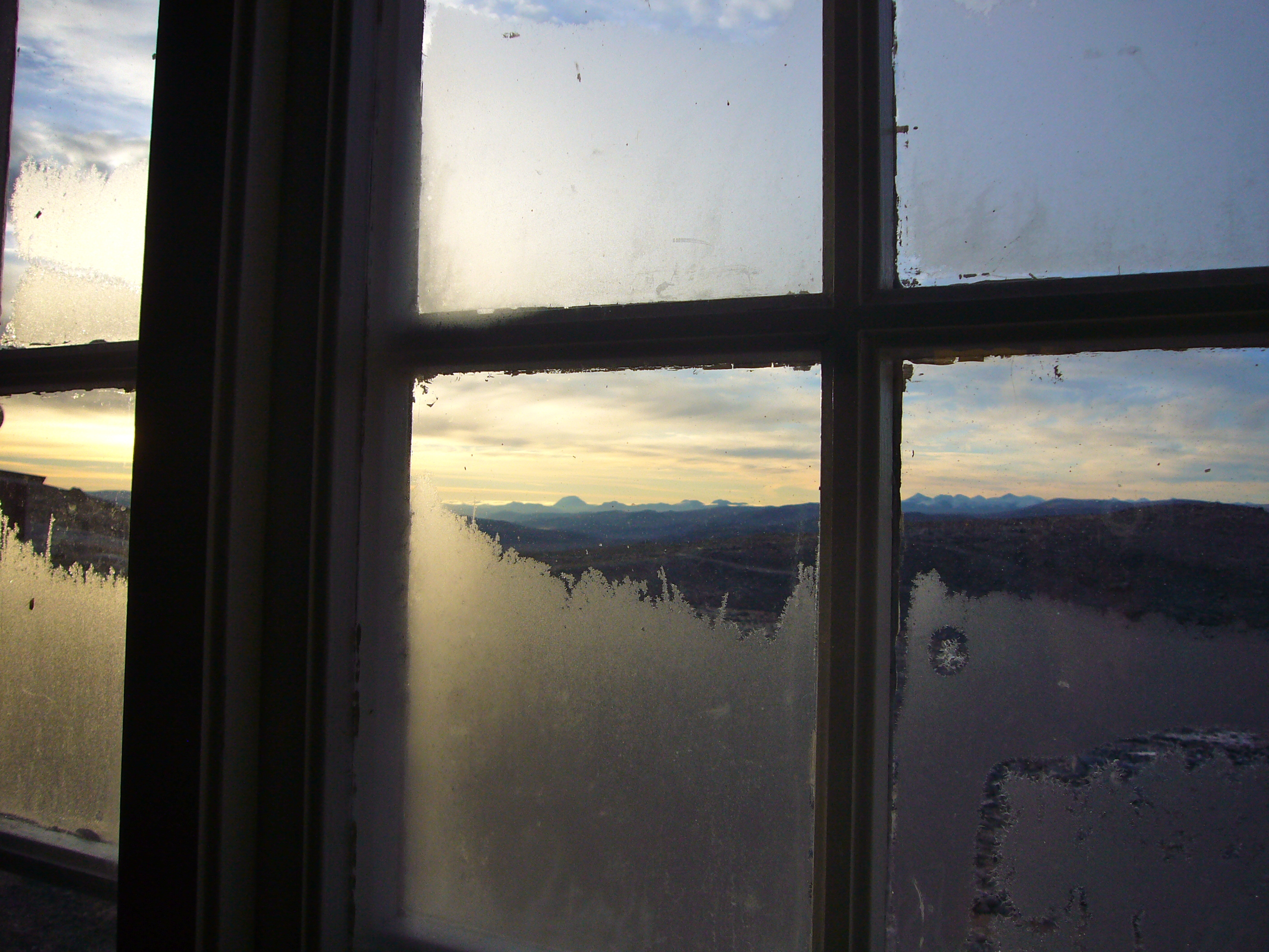 Storsølnkletten i Alvdal og Rondane sett ut gjennom vinduet på Larsbu søndag morgen