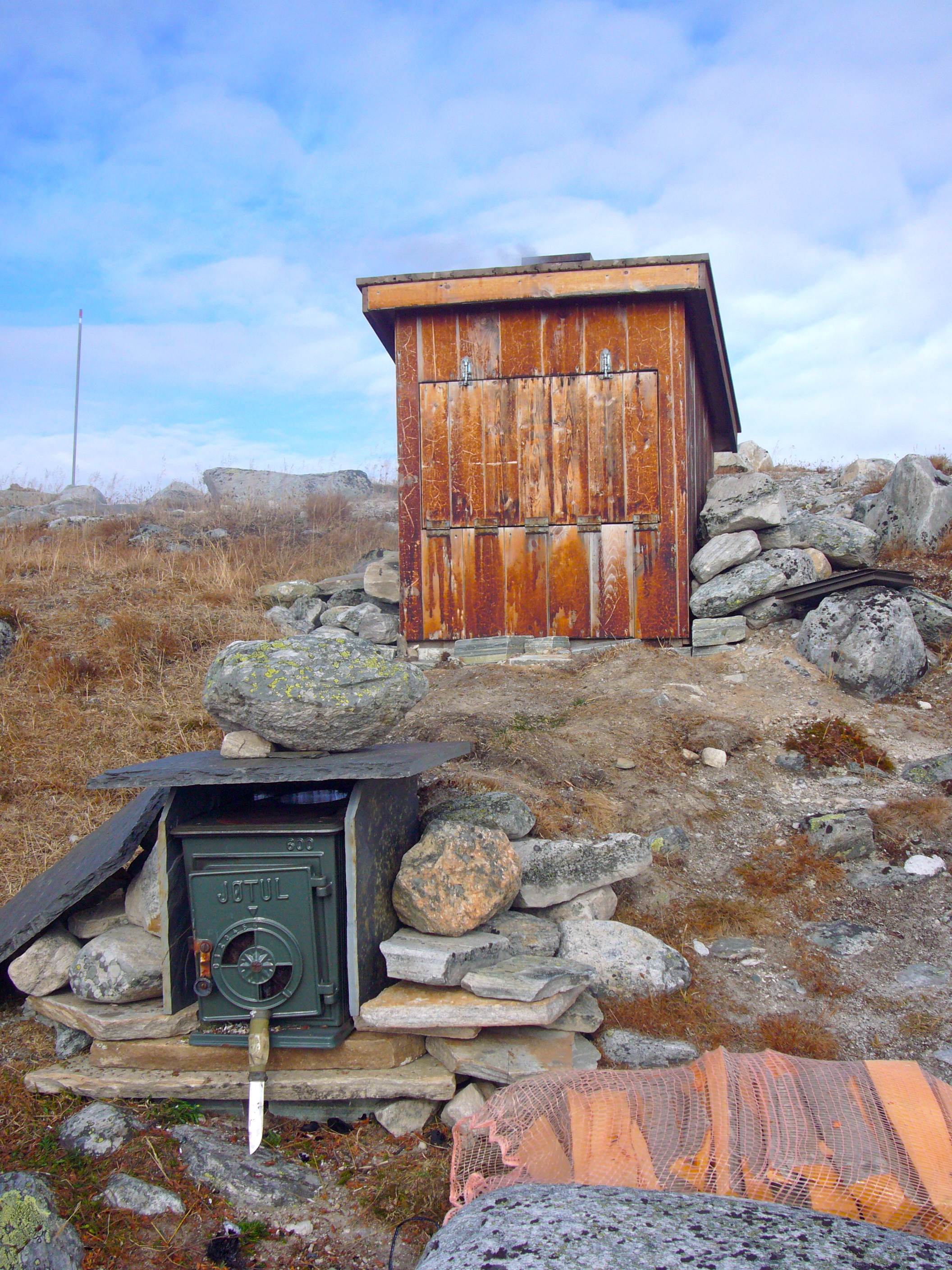 På Snøheim har de egen røykeovn der Kjell bestyrer røyker fisk og kjøtt til frokost og middag