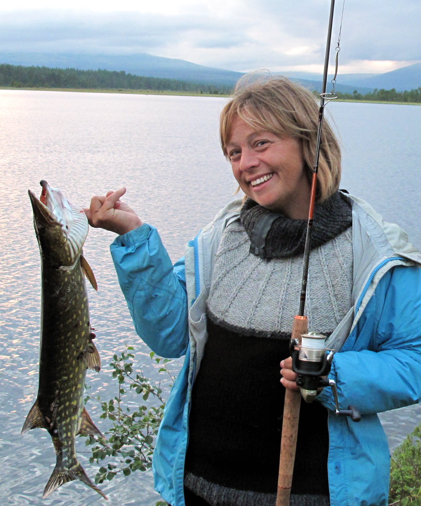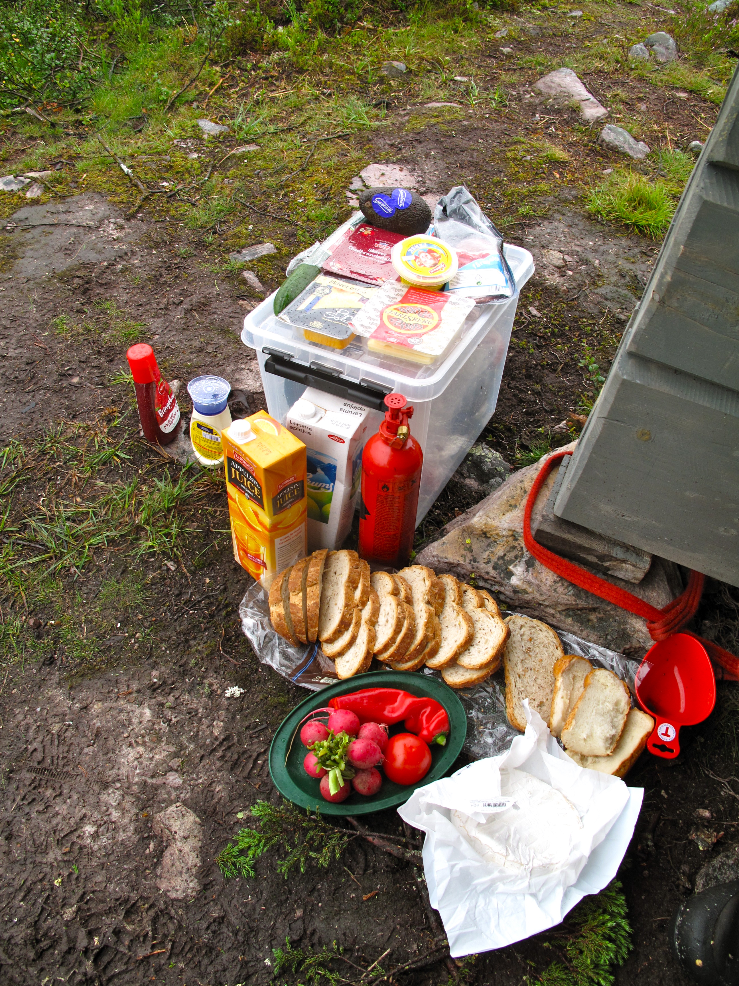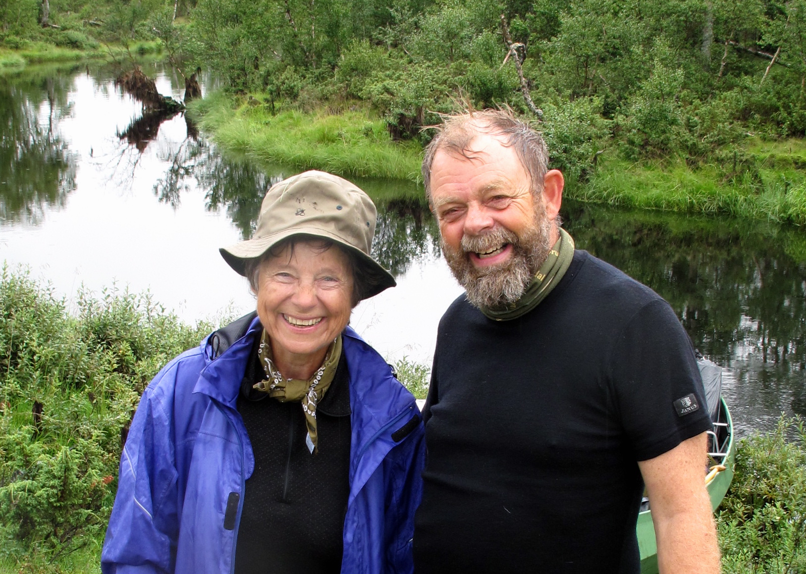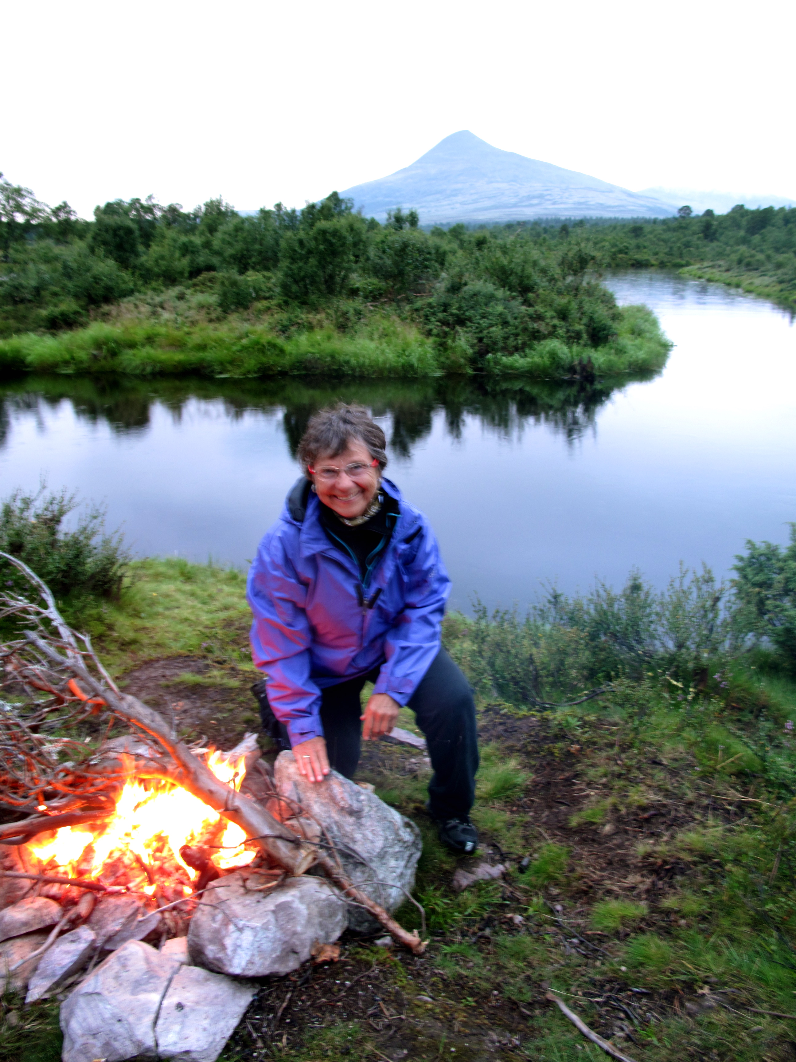 Vi tok av fra Rendalen ved Unset og kjørte østover. Dette er en bomvei, men en flott vei ca 3 mil over fjellet til Sølendalen. Vi kom fram til broa over til Storlægda der vi skulle starte turen. Pappa og Lars Erik kjørte en bil sør til Sølenkroken der vi skulle ende turen mens Mamma og jeg inspiserte elva og området. Siden vi allerede var kommet ganske langt ut på ettermiddagen, regnskyene kom stadig nærmere og vi fant en koselig gapahuk og leirplass rett ved broa bestemte vi oss for å starte rolig med å campe første natta her. Der fikk vi også sjøsatt kanoene og tok en rolig tur litt oppover elva – greit siden det var 15-20 år siden Mamma og Pappa sist satt i kano, og elva sørover startet med et stryk… Vi fikk en flott kveld og feiring av Mammas 64-årsdag med rundstykker og kakao selv om regnet kom, etterhvert ganske kraftig.