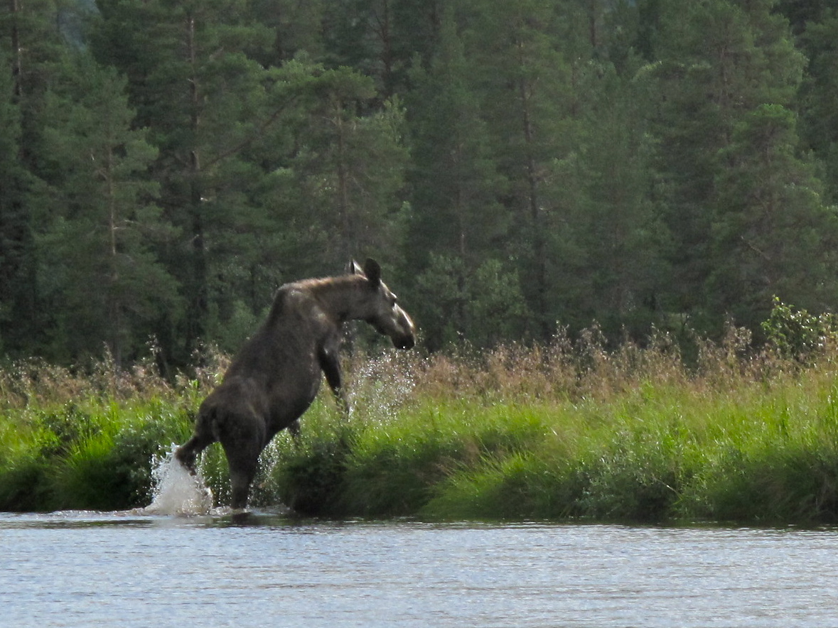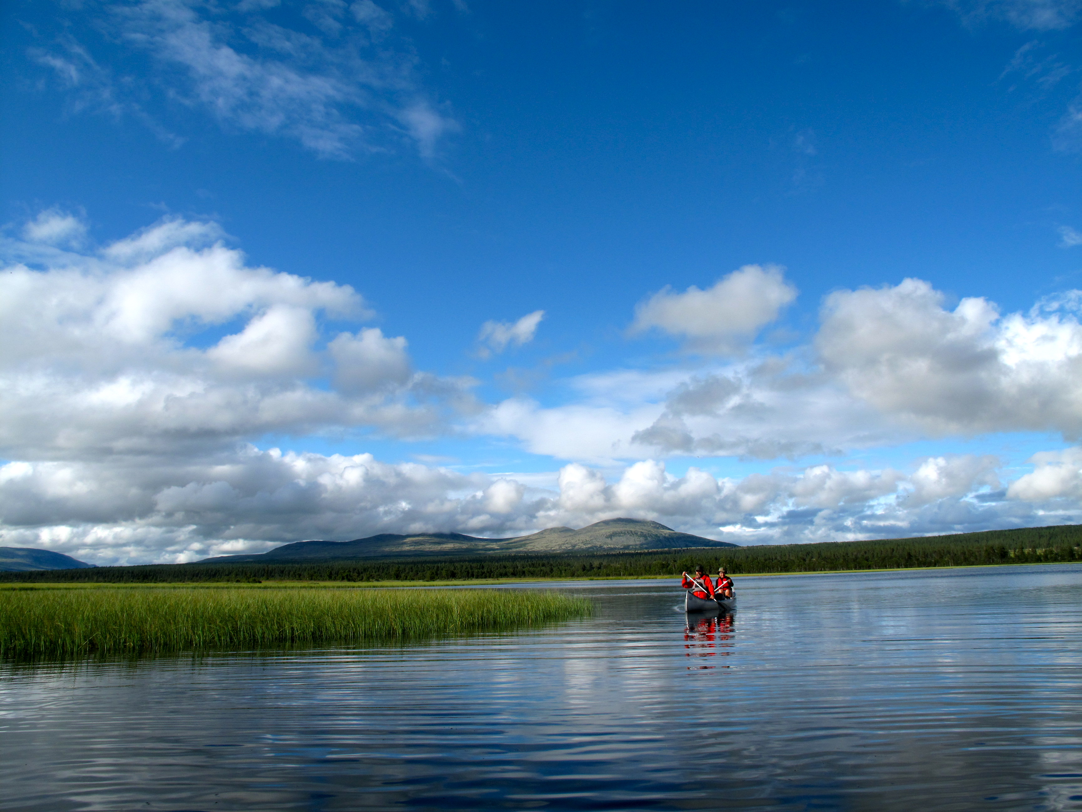 Kanotur på elva Sølna. Fra late svingerog stille vann til lekne stryk gjennom rolig landskap i et nydelig område med fjellene Elgspiggen i nord og Sølnmassivet i sør.