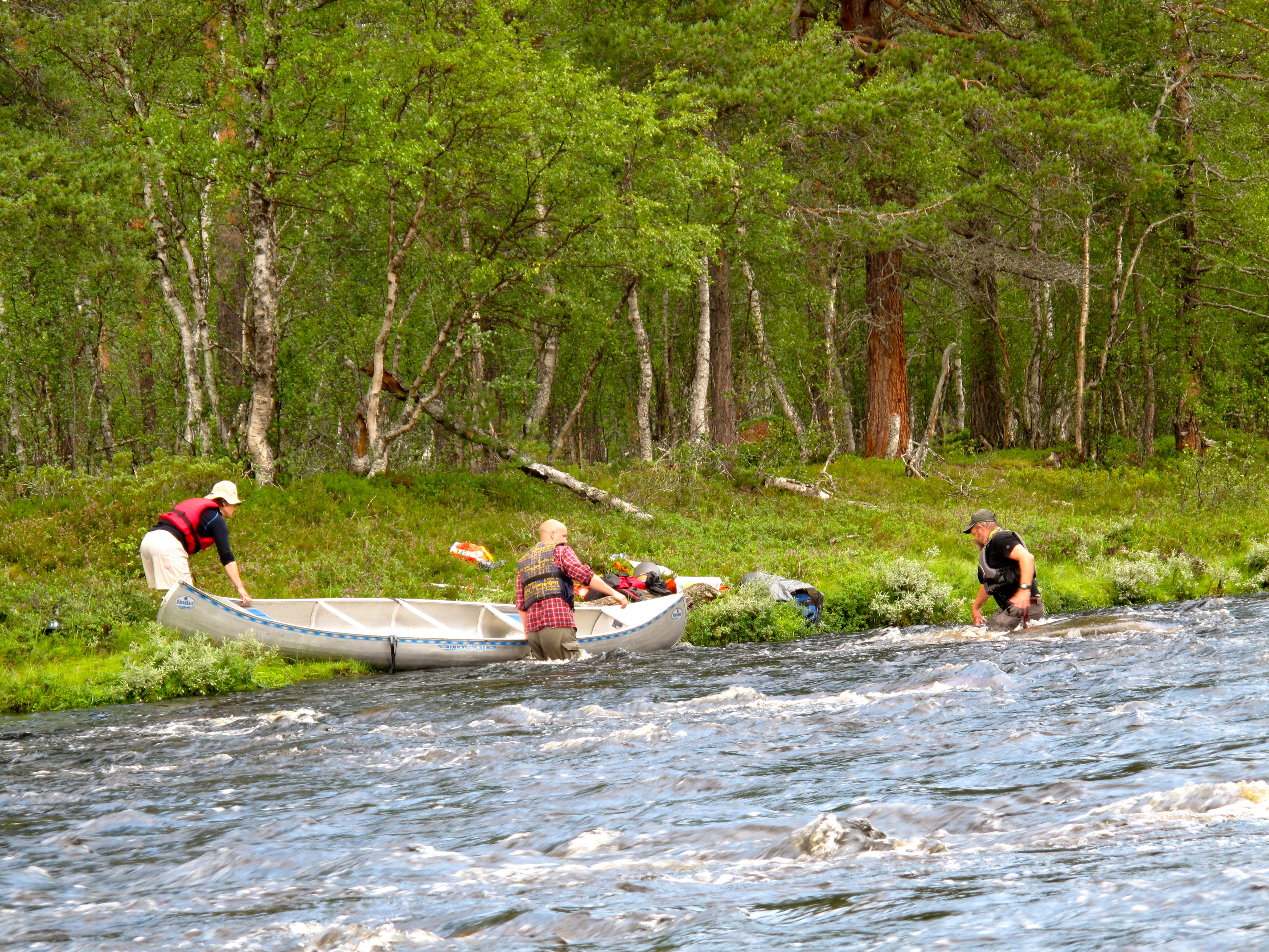 Torsdagen begynte med en rolig morgen med lesing, kaffe og morgenbad før vi pakket i kanoene og satte kursen sørover siste del før Sølnkroken. Vi traff på flere stryk denne siste delen, og alle gode ting er tre, så i siste stryket tok Mamma og Pappa en siste velt. Det var et flott vær og lunsjen ble fortært foran de fine båthusene i Sølnkroken før vi satte kursen hjemover, godt fornøyde etter en artig kanotur. Totalt var turen ca 20 km.