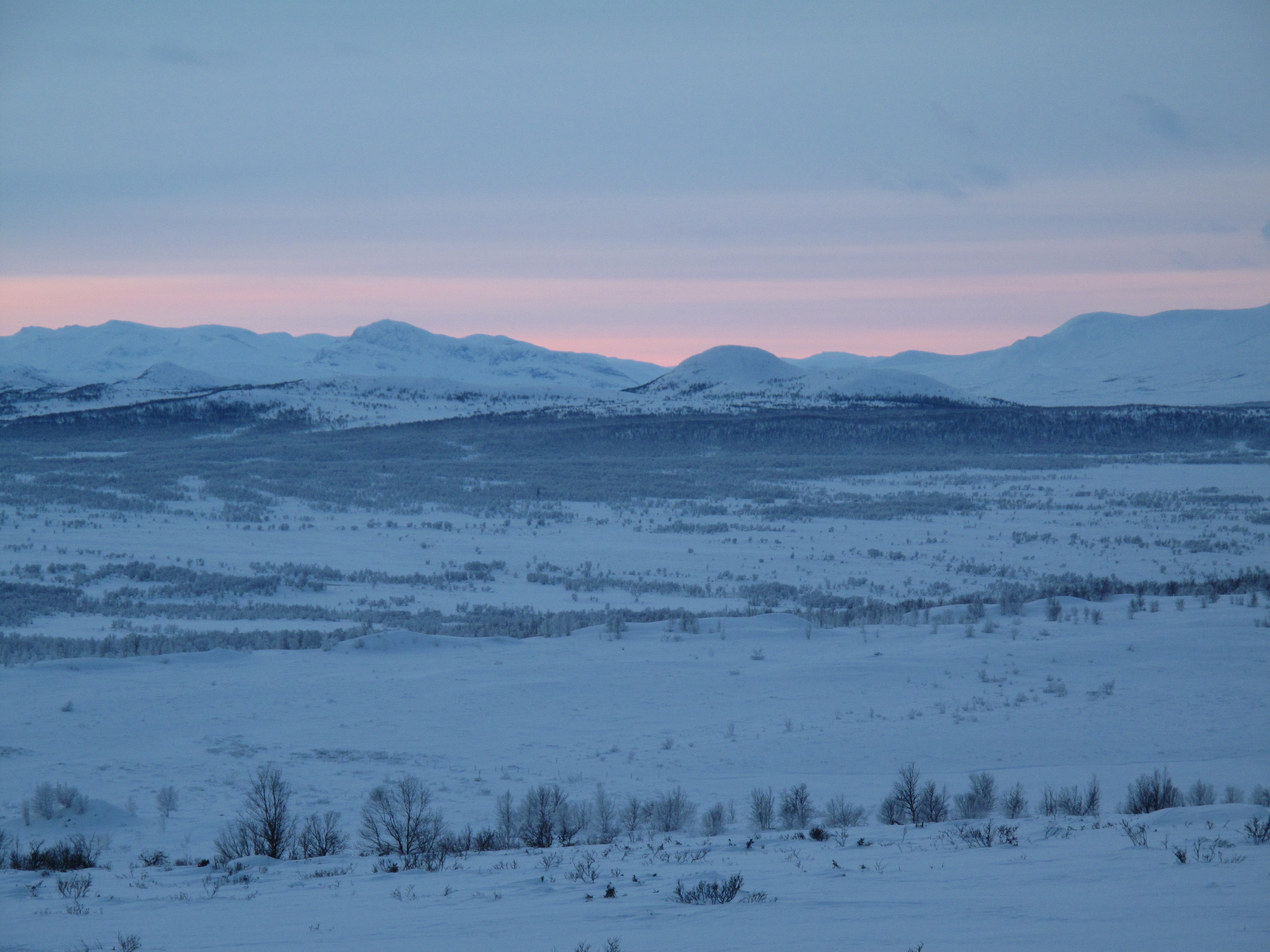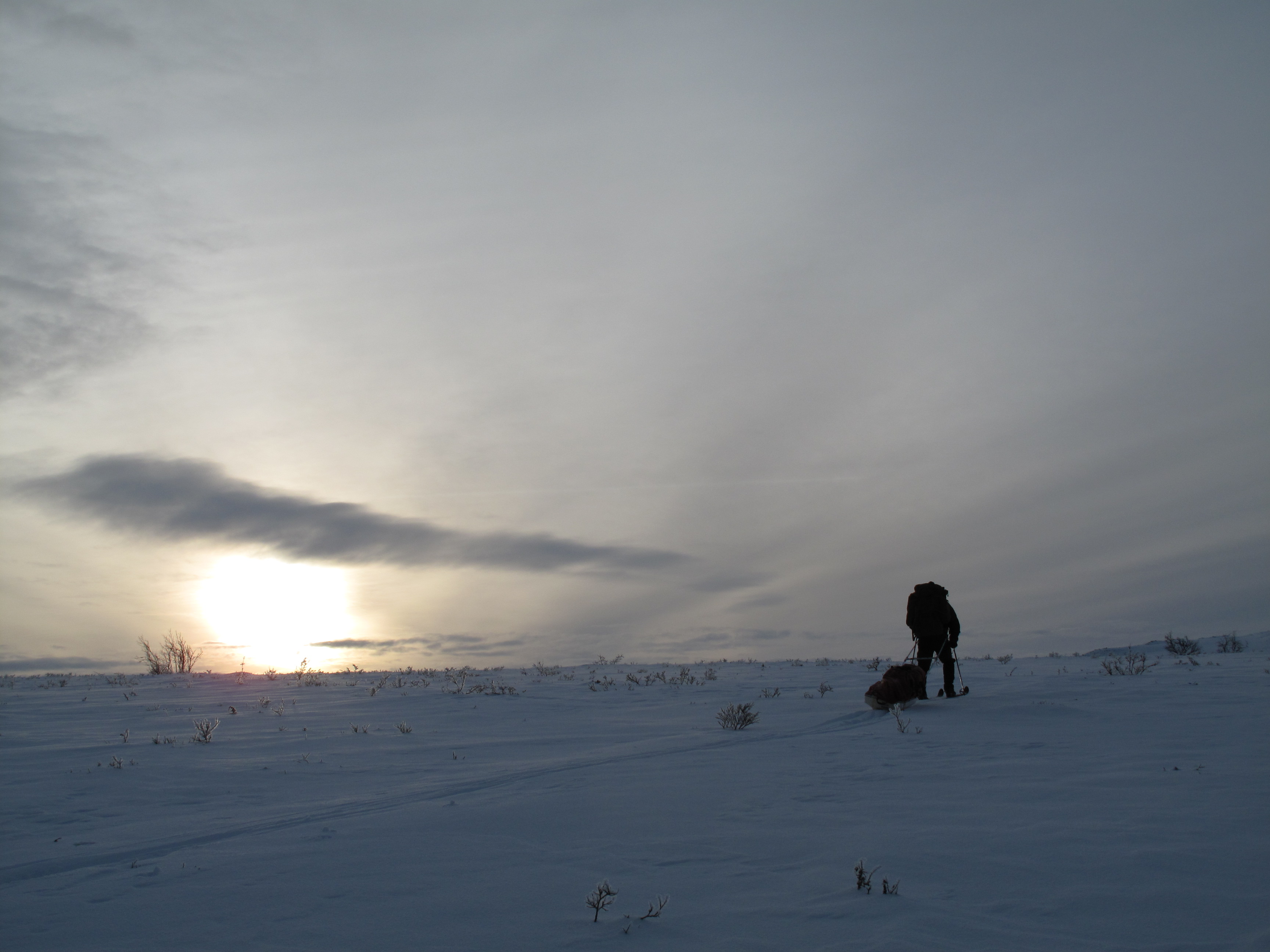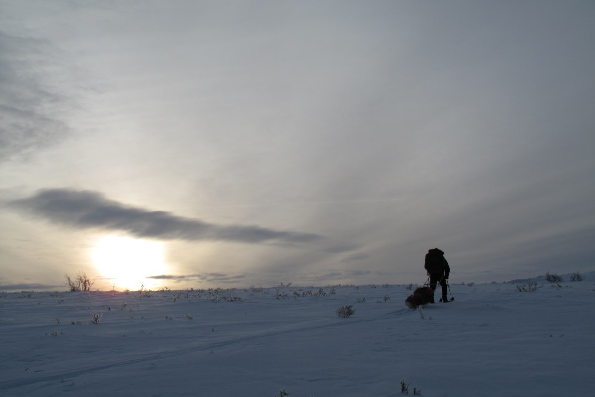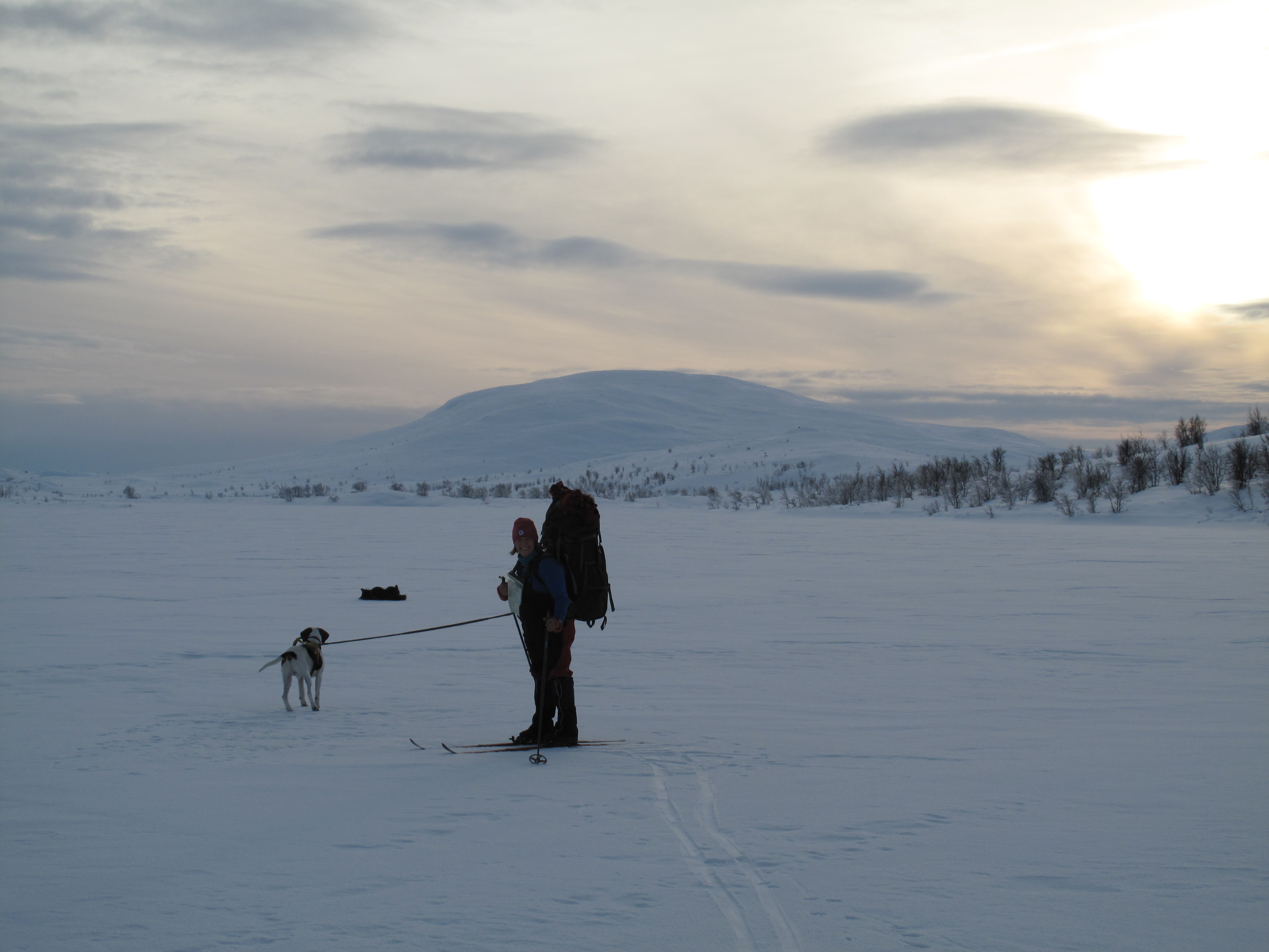Det var så koselig på Svarttjønnholet at vi ble her en ekstra natt. Vi startet dagen med lesing foran peisen, sen frokost på trappa, og fortsatte med tur opp til Gråurdhøa, toppen bak hytta, og fikk med oss solnedgangen på vei ned igjen. Noen dager senere hørte vi at det lille nyttårsaften, altså dagen vi dro fra Svarttjønnholet, var blitt felt en ulv i området vi var i, som hadde tatt 30-40 rein! Vi var altså ikke mange kilometrene fra denne.