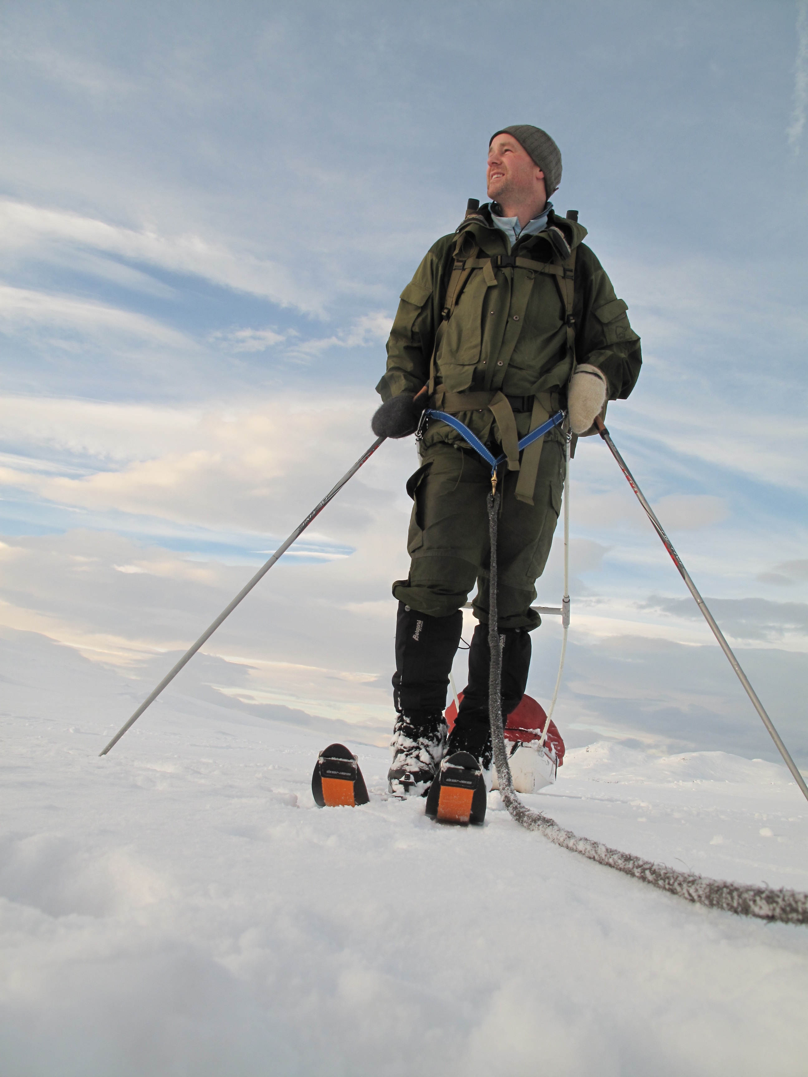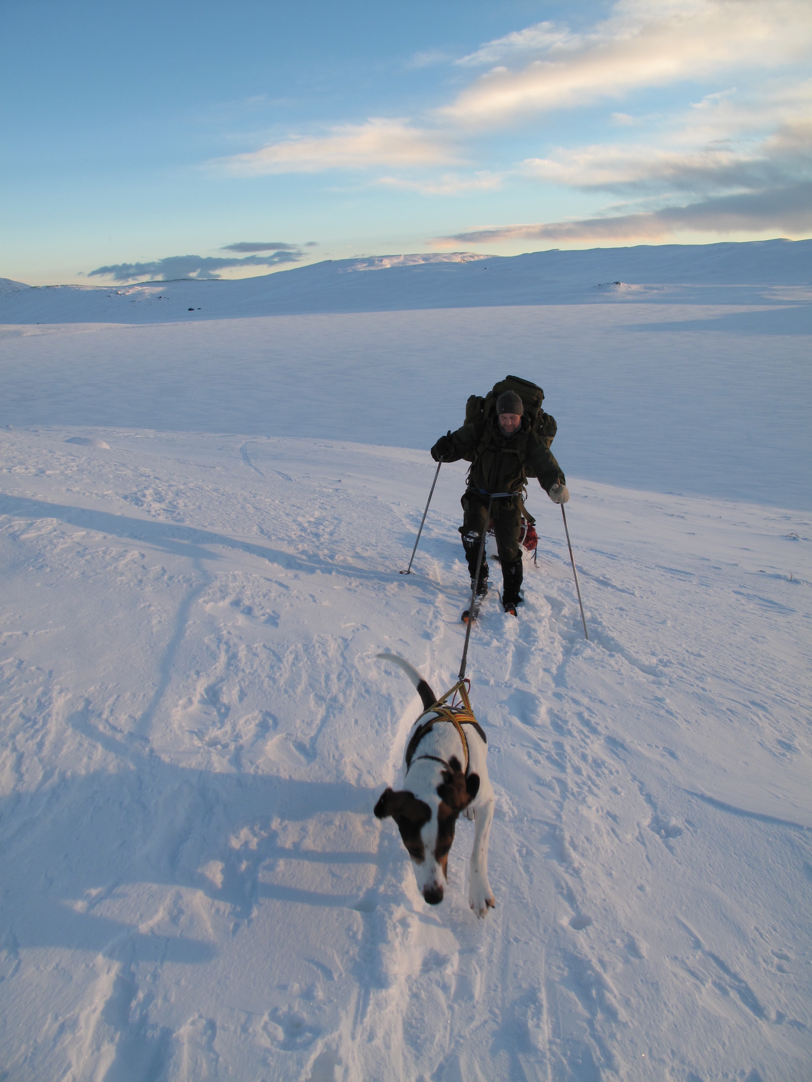 Nyttårsaften gikk vi fra Nordbua oppover mot Øvre Megrunnstjønna og Megrunnsbua. Det var blitt skikkelig trått og råttent føre men vi var heldige og kunne gå på en hundekjøringsløype nesten hele veien opp til Megrunnsbua. I løpet av disse dagene møtte vi totalt tre hundespann som alle trente til hundekjøringsløpet Gausdal maraton som skulle arrangeres rett over nyttår.