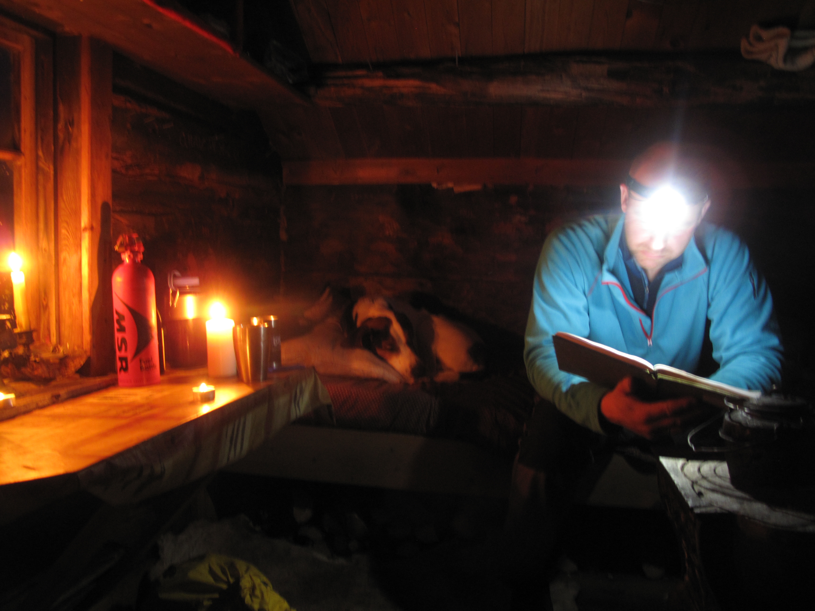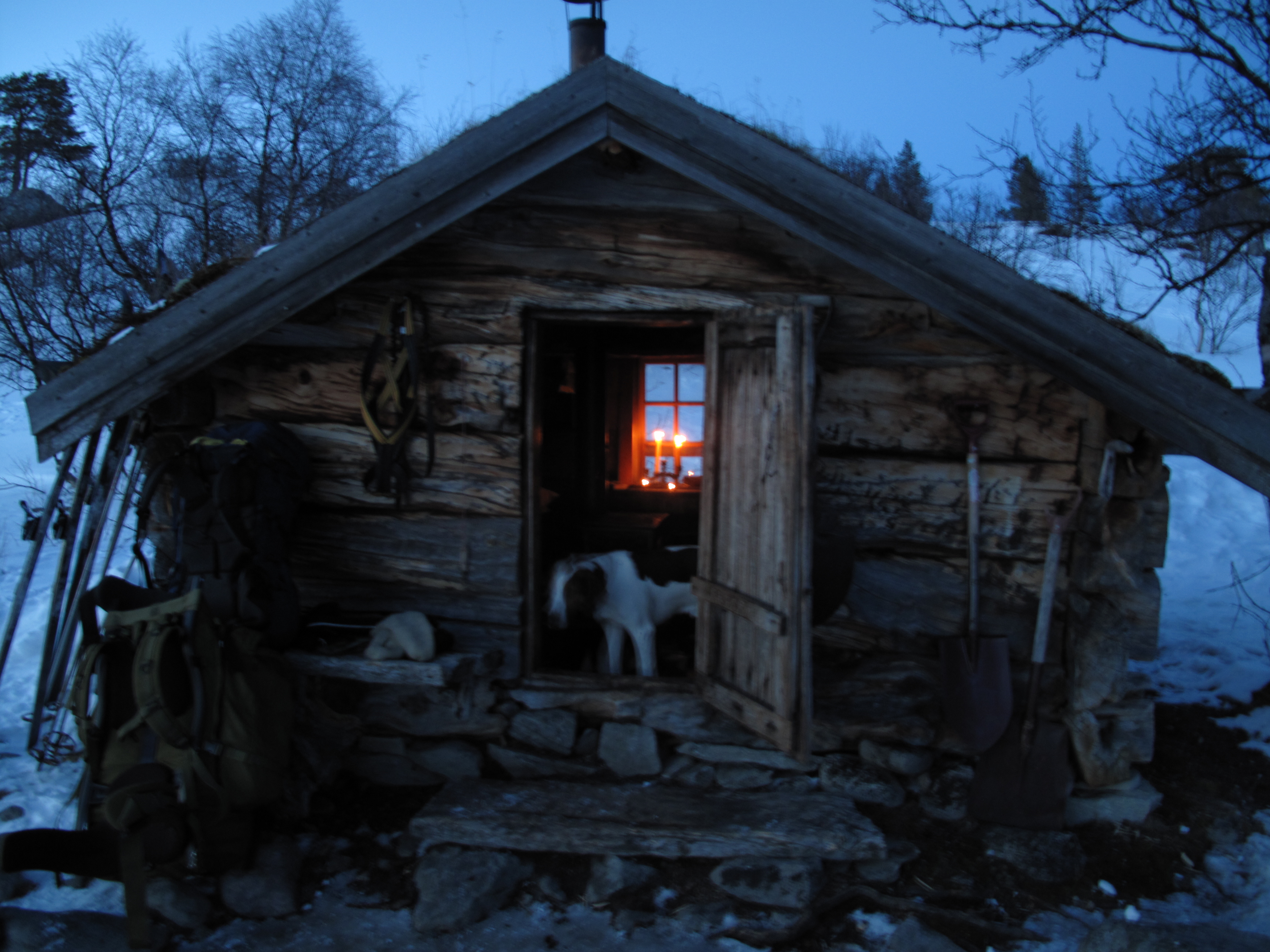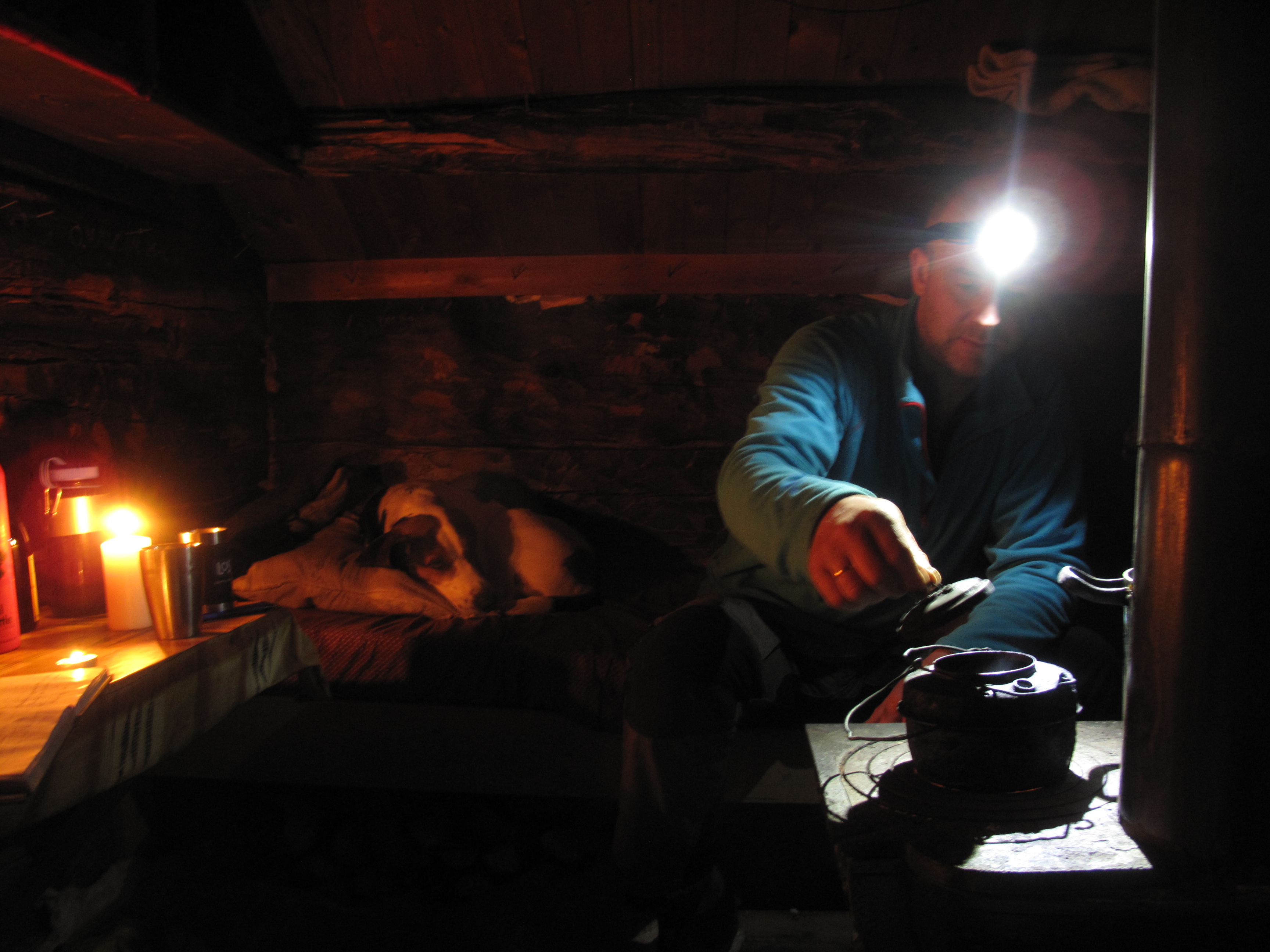 Vi gikk videre opp mot Styggsjøan og krysset disse. Vi gikk oppover den lange tynne tarmen i nordenden av vannet og krysset over til Revsjøen derfra. Videre gikk turen nordover over Revsjøen og videre nordover gjennom furuskogen og deretter stigning opp på fjellet vest for Skjebrofjelltangen. Sola gikk ned idet det begynte å flate ut og himmelen ble farget rosa. Vi gikk de siste kilometerne nordover, langs den østre av Volsjøan, og opp til Fautbua nordøst for denne. Fullmånen kom opp og vi hadde en koselig kveld i Fautbua. Fautbua er ei koselig koie med to brisker, bord mellom, vedovn og plankegulv.
