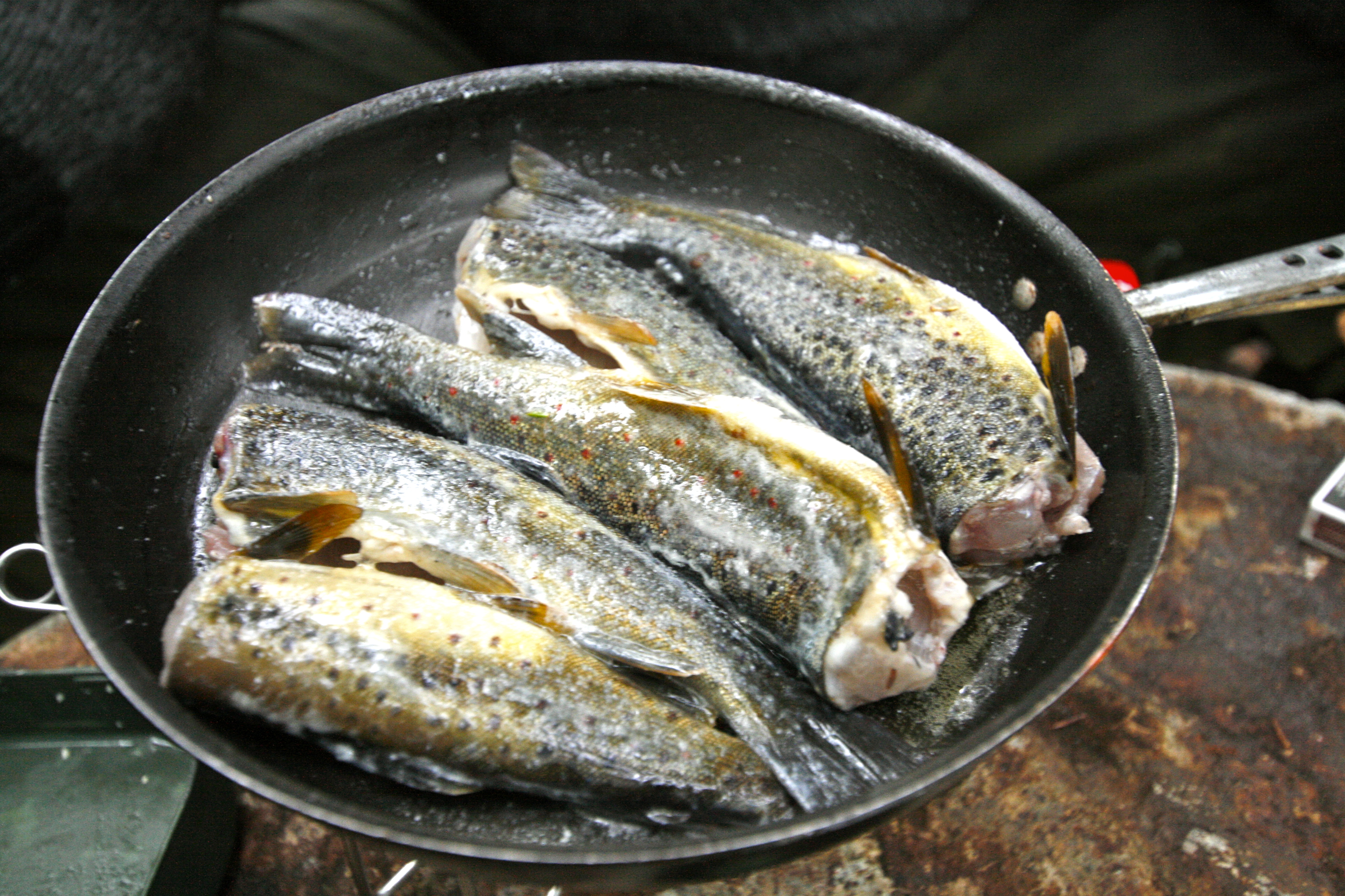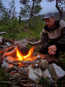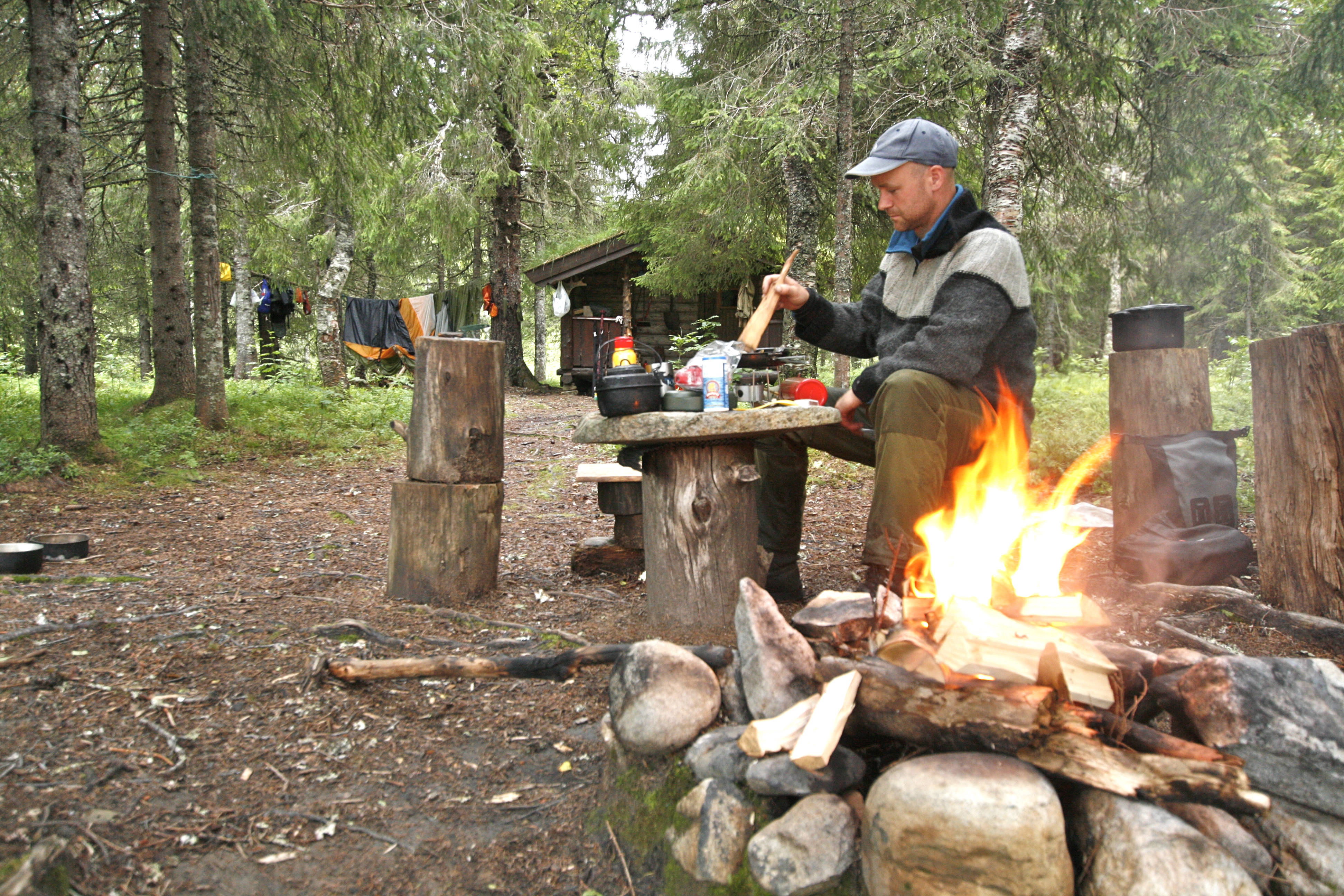 Vi kom tilbake til Gubbjønnbua i sekstida, fint med en lang kveld foran oss. Lars Erik hadde med røykovn, så vi røkte elgkjøtt som vi hadde både til pålegg og til middag denne dagen, sammen med poteter, gulrøtter, rosenkål, blomkål og fløtesaus – nydelig!