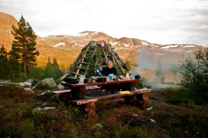 Overnatting: fire netter i telt, to netter i åpne koier og to netter i en åpen kåte/gamme