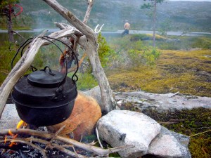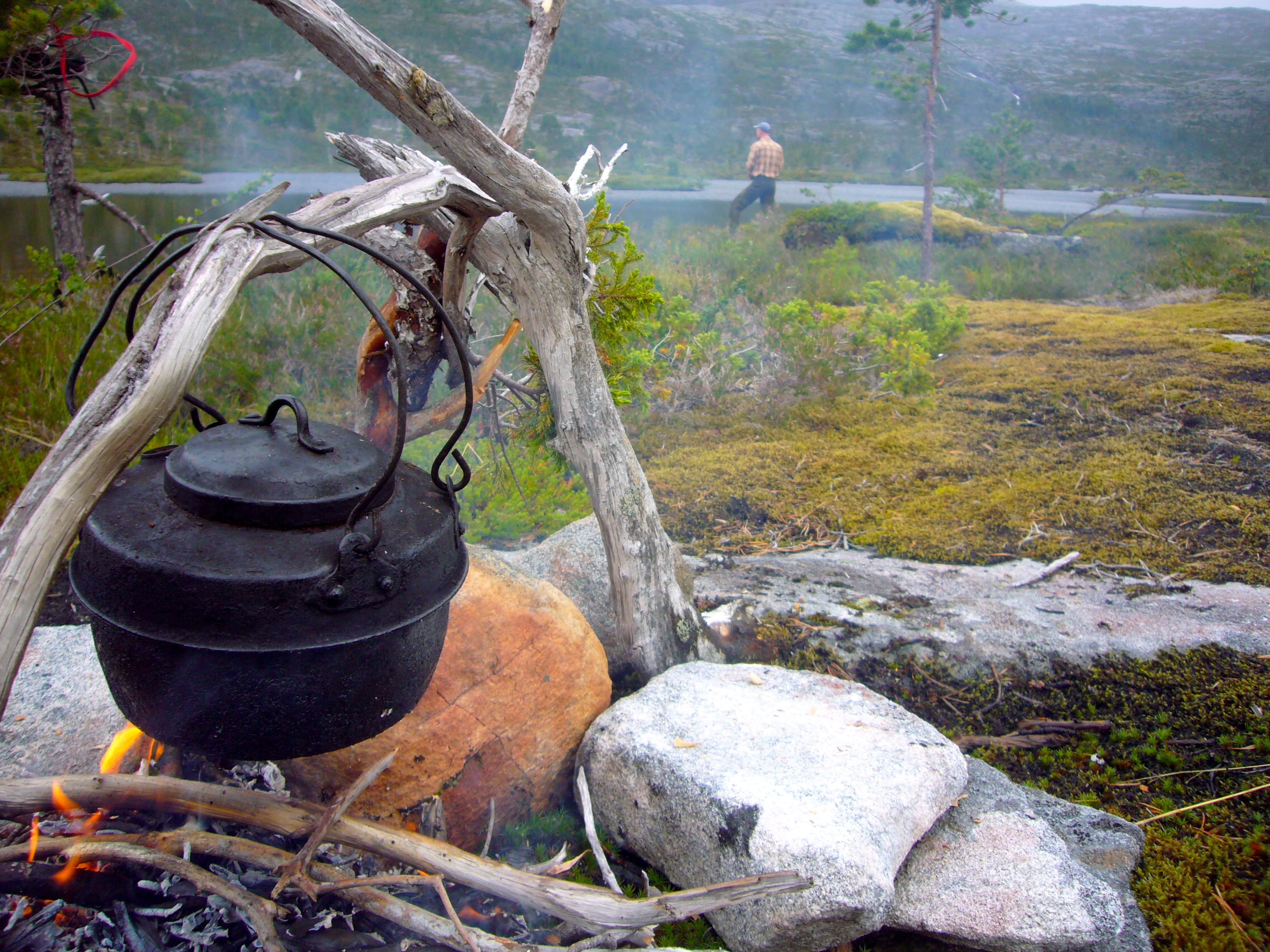 Fra Stubbvollen og nedover skogenOver myrene ved Stråsjøen med Stubbvollen i bakgrunnenOver StorkjølenMmm – deilig furuved…og kaffekok før siste etappe til KvitfjellhyttaKvitfjellhyttas kombinerte anneks, do og hundeavdelingKveldens meny – rakfisk med tilbehør