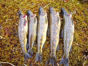 Tåka kom rundt midnatt, og den lå svært lav da vi våknet (ca 400 moh). Sakte men sikkert steg den opp til 6-700 moh i løpet av dagen. Vi gikk på vestsiden av Nedre Breivatn og krysset Breivasselva helt i toppen, der det er en øy i mellom. Det gikk veldig fint nå som elvene ikke hadde fått nedbør på et par døgn. Vi gikk oppover lia til nedre Lappskardsvatnet og der møtte vi plutselig et par personer – de første menneskene vi hadde møtt på en uke. Det var to tyskere som hadde funnet området på internett! Deretter fulgte ruta vår tilbake mellom Midtre og Øvre Breivatnet, hadde fiske- og potetmoslunsj etter vi hadde krysset elva mellom de to vannene og gikk opp på dagens høyeste punkt på nesten 600 moh. Da vi var komment et stykke nedover i dalen ned mot Bjørnstokkvatnan møtte vi en til turgåer – nok en tysker som hadde funnet området på internett, og som skulle være på tur en del dager og satset på at han fikk fisk, for det var den maten han hadde belaget seg på! Vi slo leir ved utløpet av Bjørnstokkelva helt sør i øvre Bjørnstokkvatn – på østsiden, på en myrete plass viste det seg. Men det ble like fullt bål ute også den kvelden.