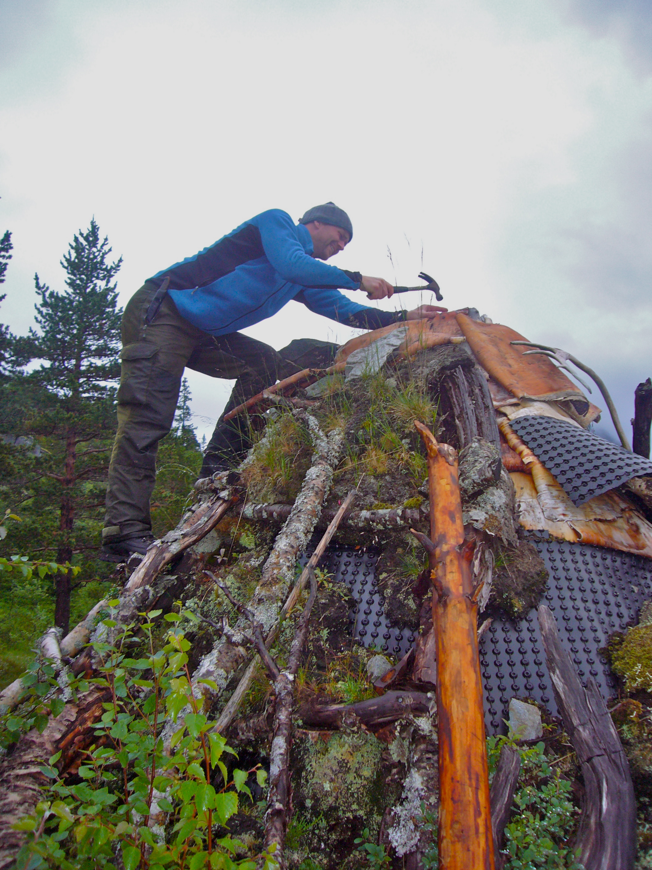 På vei opp fra GrunnvatnetLunsjtid med utsikt utover LomstjørnanLitt lapping på taket før gamma kunne inntas