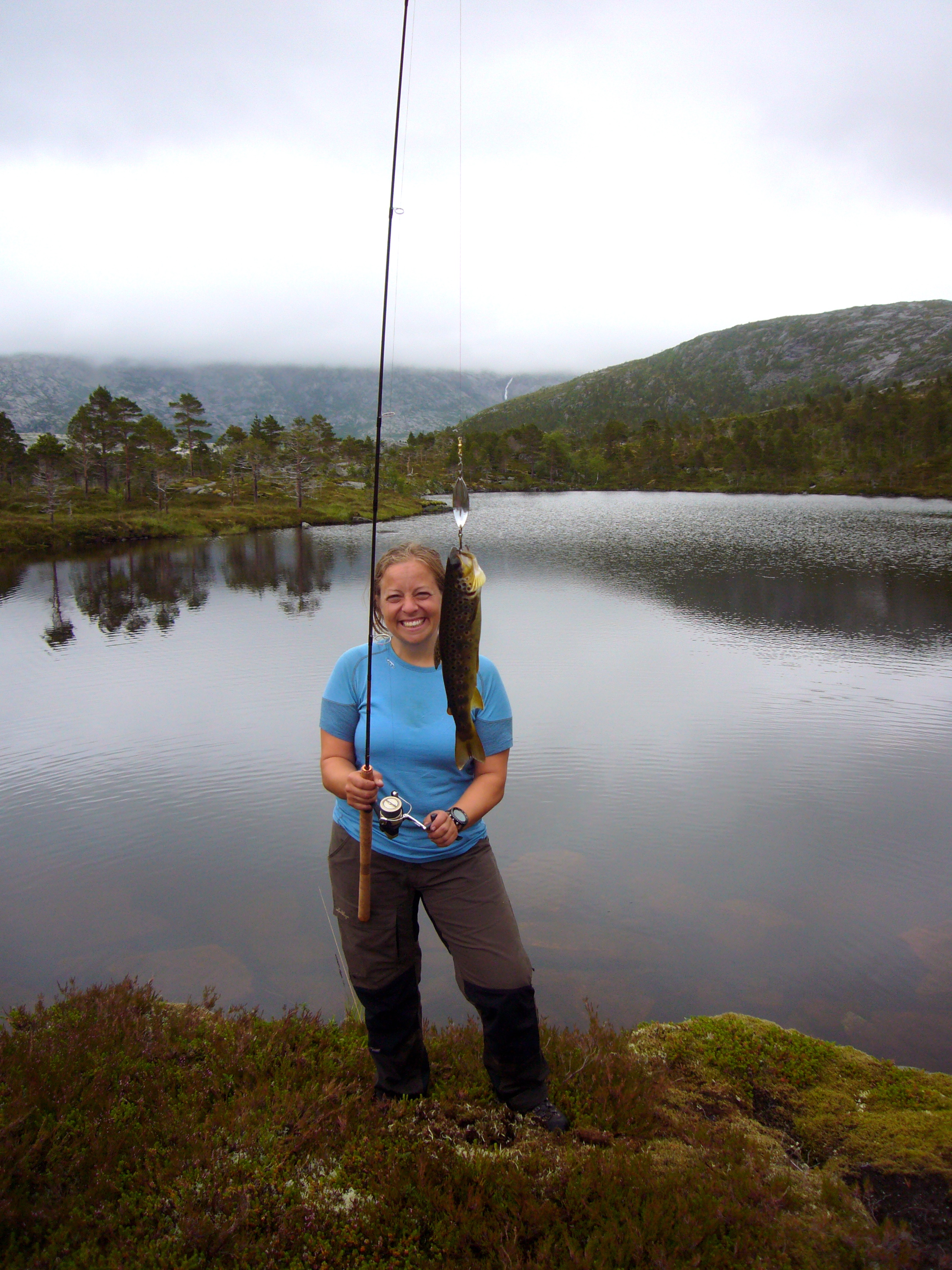De første kilometerne tilbakelagt og 7 dager til neste gang vi så folkFiskestangens jomfrukast i øvre BjørnstokkvatnEt par små ørreter bet på i fossenFantastisk kveldssol over øvre og midtre BreivatnKveldssol i Lomsdal Visten nasjonalpark – vakkert!Livet er fint!