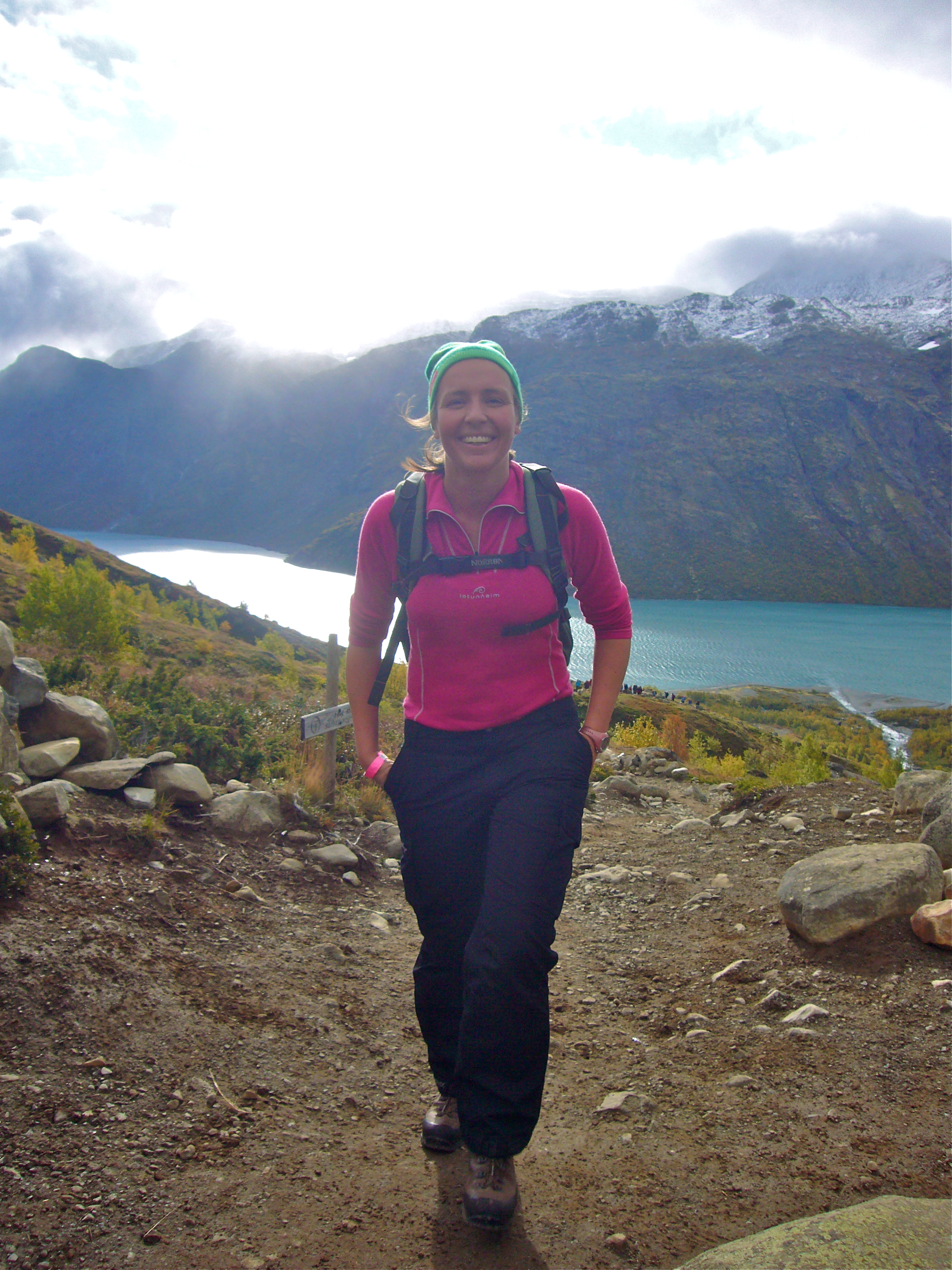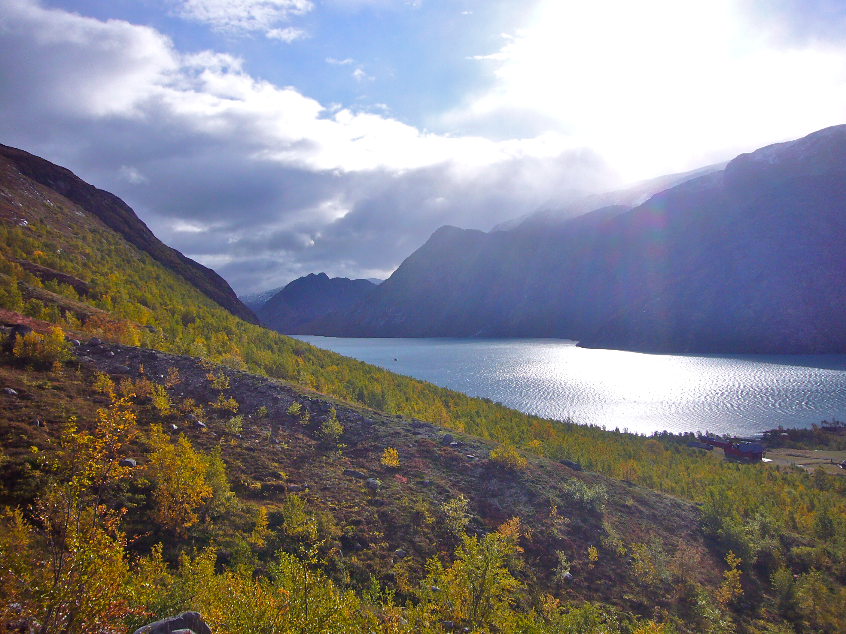 Utsikten fra Gjendesheim lørdag morgenPå vei opp fra Memurubu var høstfargene absolutt til stedeDen glade vandrerPå stien med Besshø i bakgrunnenVi møtte snøen ved ca 1600 mohEn herlig dag!Toppen av Besshø – et vindfullt stedHetta var god å ha på toppen, det var så vidt vi klarte å ta bilde så mye blåste detUtsikt mot KnutshøHerlige høstfarger