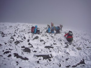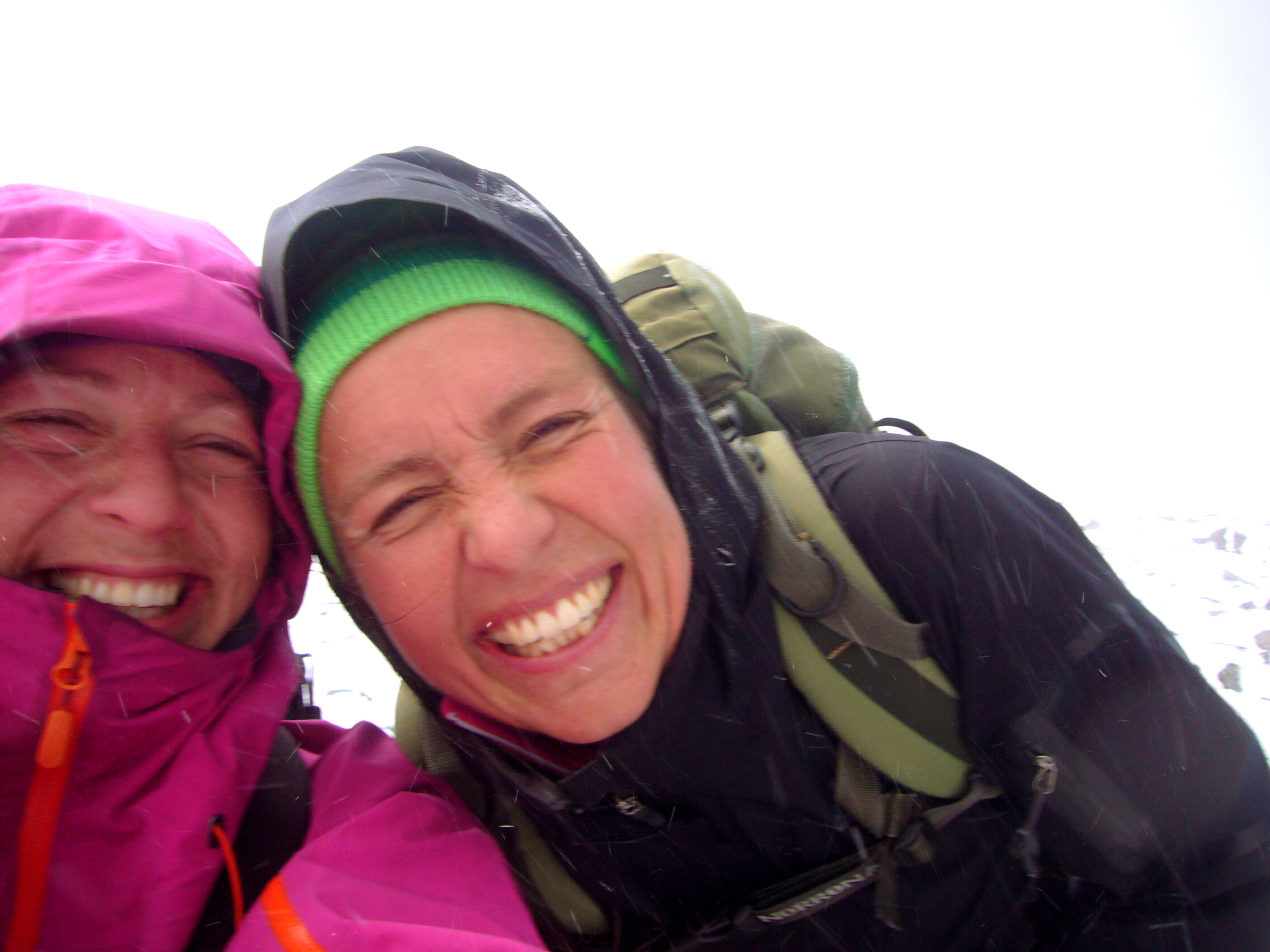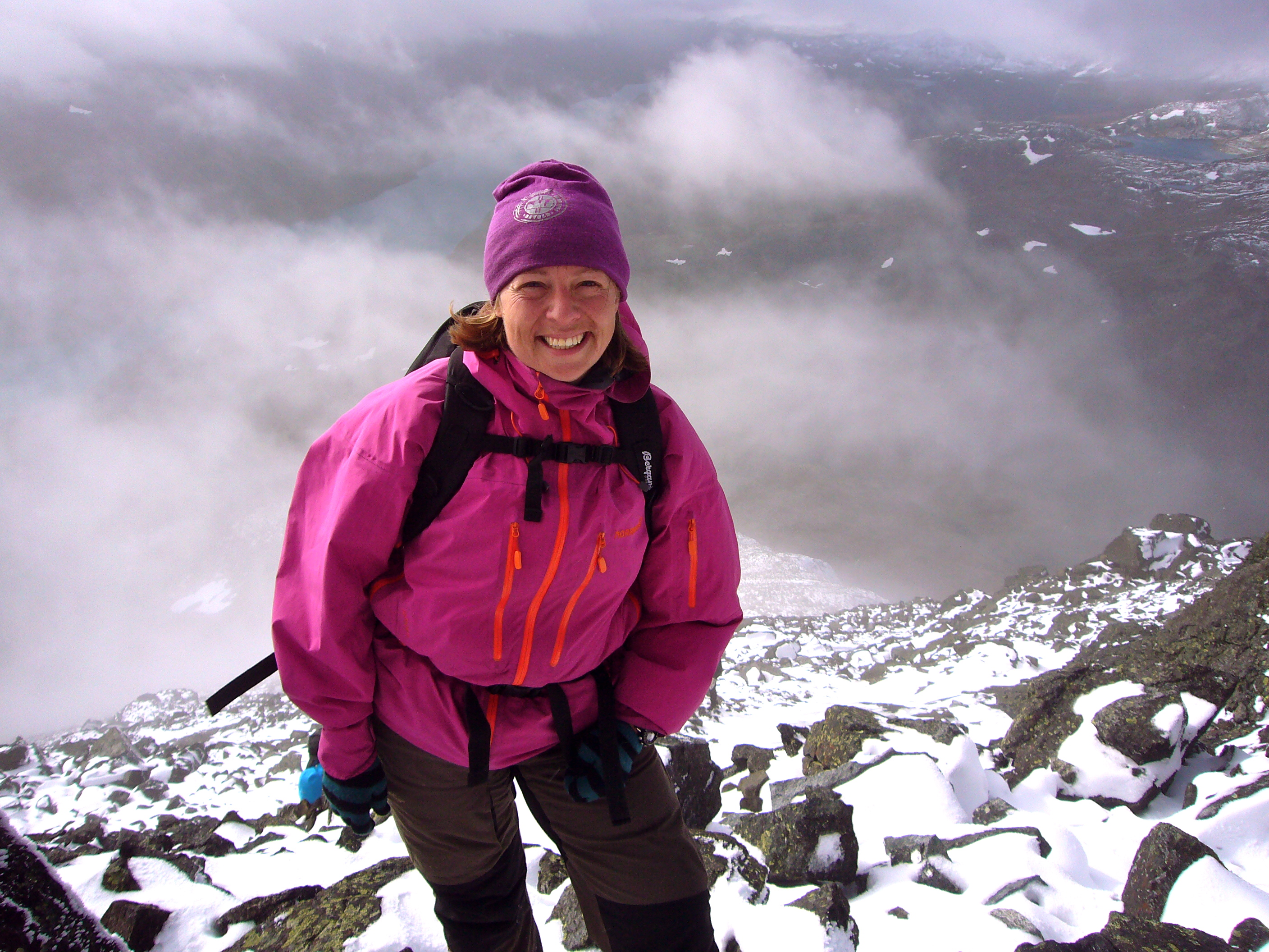 Hvorfor ikke dra fram hekletøyet på toppen…? Vi traff et par jenter på toppen som hadde med hekletøy i sekken og det er ikke hver dag man kan ta bilde heklende på en topp! Foto: Mari Kolbjørnsrud