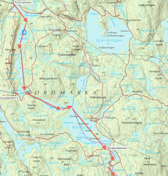 Sted: Vannveien gjennom Nordmarka, start ved Tverrsjøstallen og endte opp ved Skar